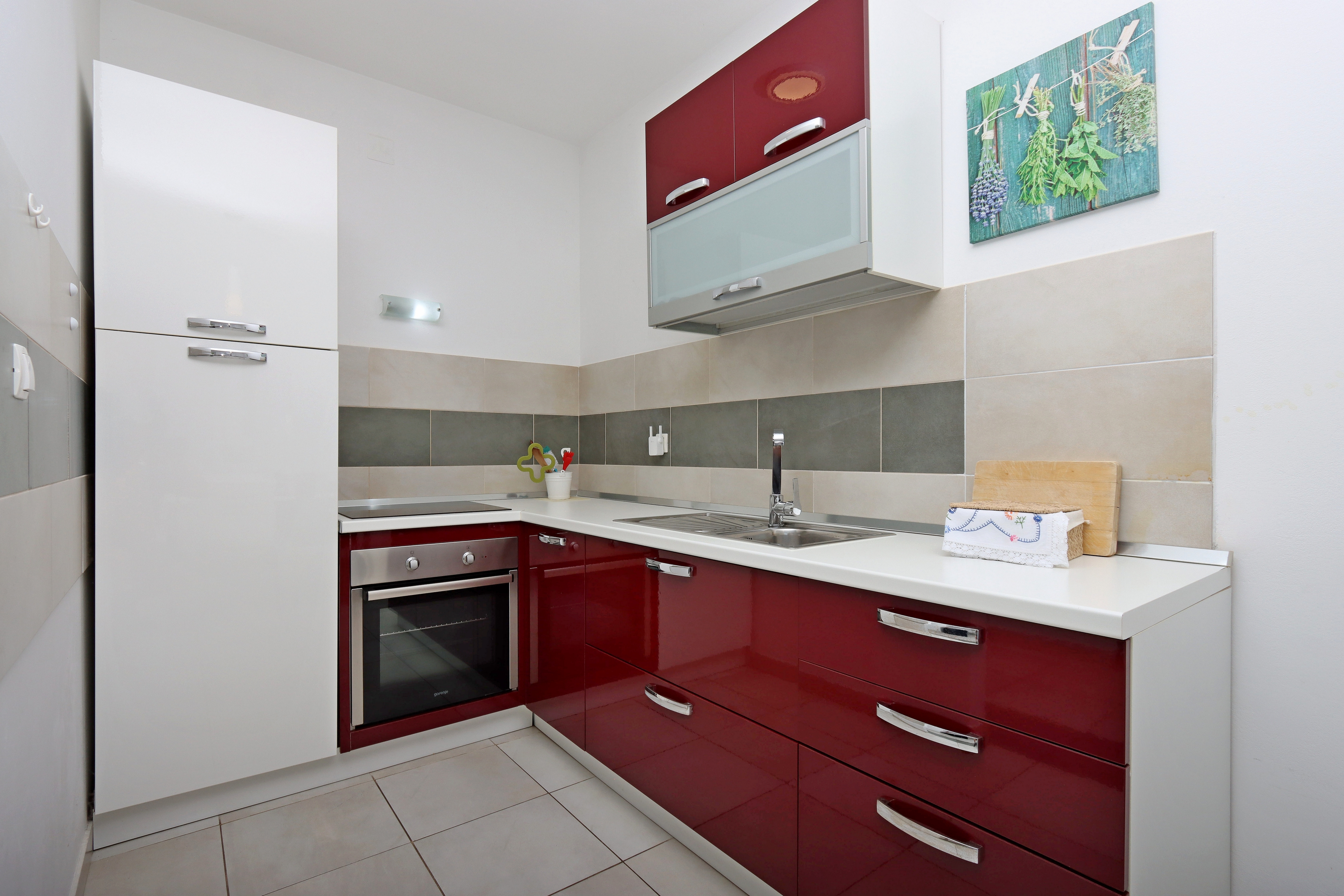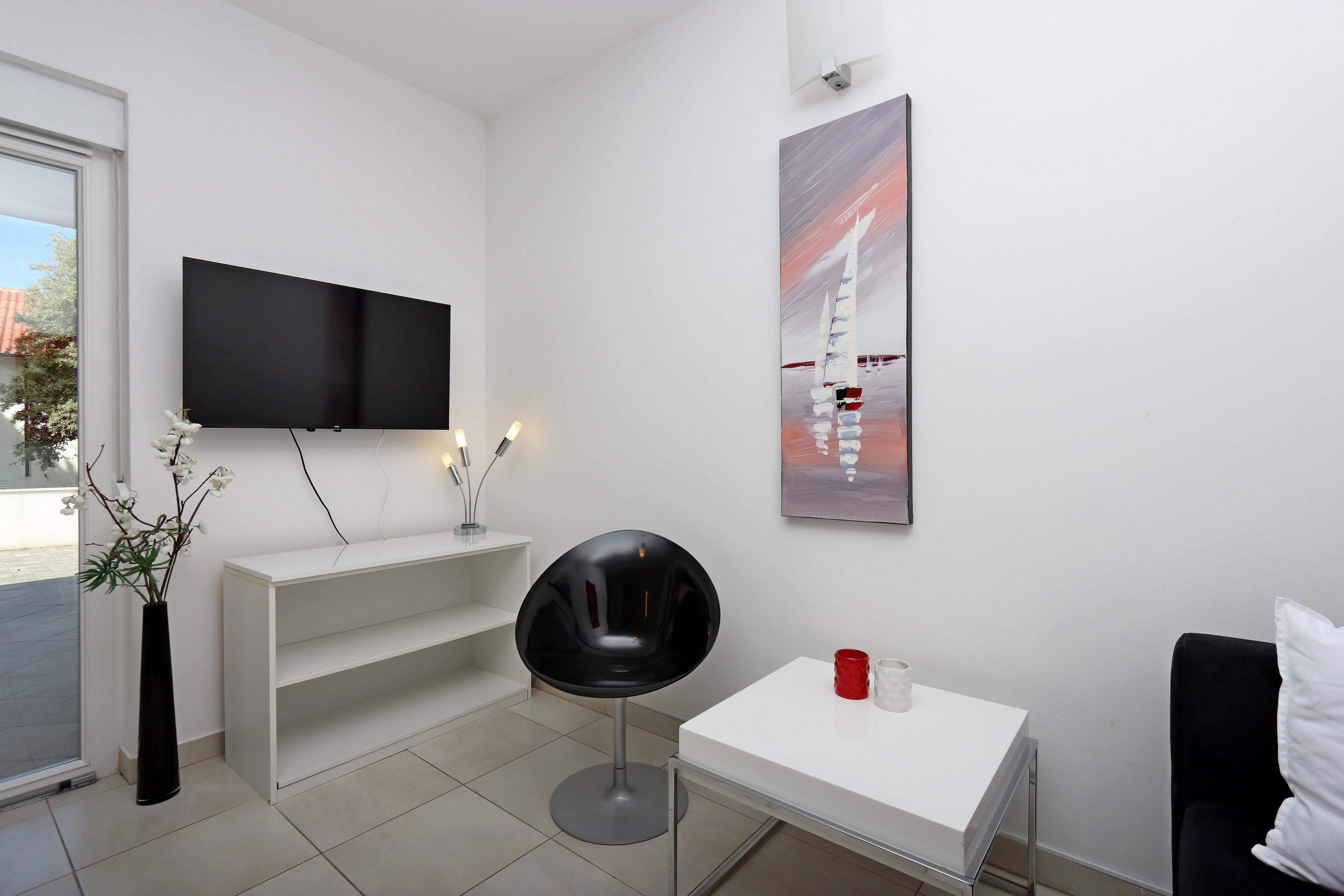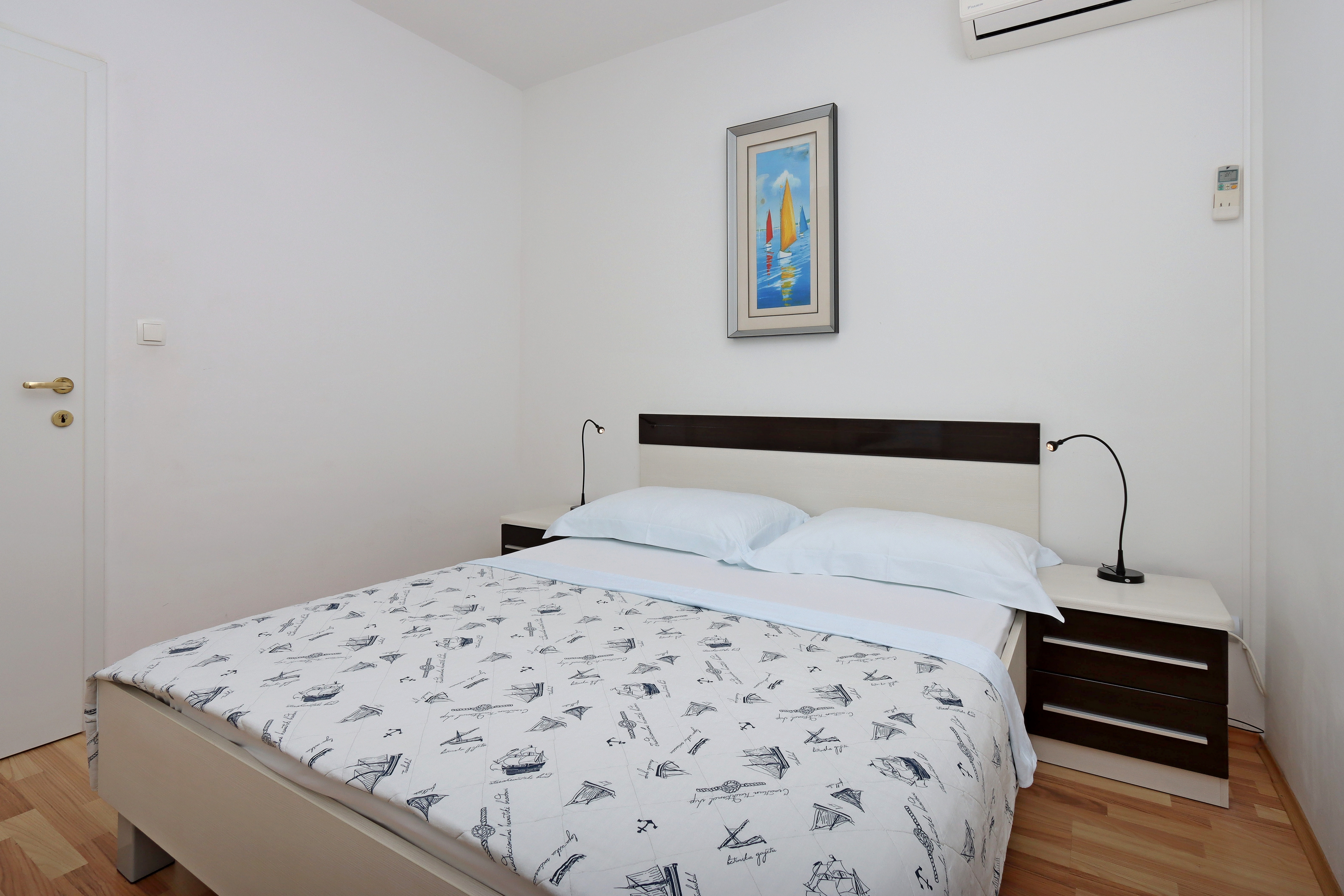 Apartment can accommodate 4 guests. Beds are situated in 2 sleeping rooms, within 50m2. Guests can use a private terrace to enjoy the warm summer evenings. Food can be prepared using barbecue which is shared with other guests too. For the booked accommodation unit the deposit is paid directly to the owner upon check-in (deposit amount is displayed on the website) INCLUDED IN THE PRICE: tourist tax, final cleaning, parking, internet, baby cot, portable barbecue. OBLIGATORY ADDITIONAL COSTS: deposit (€100.00 one-time payment), short stay fee (surcharge depending on a number of booked nights: 30% - 1, 20% - 2, 10% - 3). OPTIONAL ADDITIONAL COSTS: air-conditioning (€5.00 per night), laundry (€5.00 washing), boat mooring (€5.00 per night). The availability of additional services for your chosen dates of stay, as well as their prices (if none are listed) must be checked ahead of time. Any additional services not shown in the price calculation are payable directly to the property owner and only if used by the visitor.