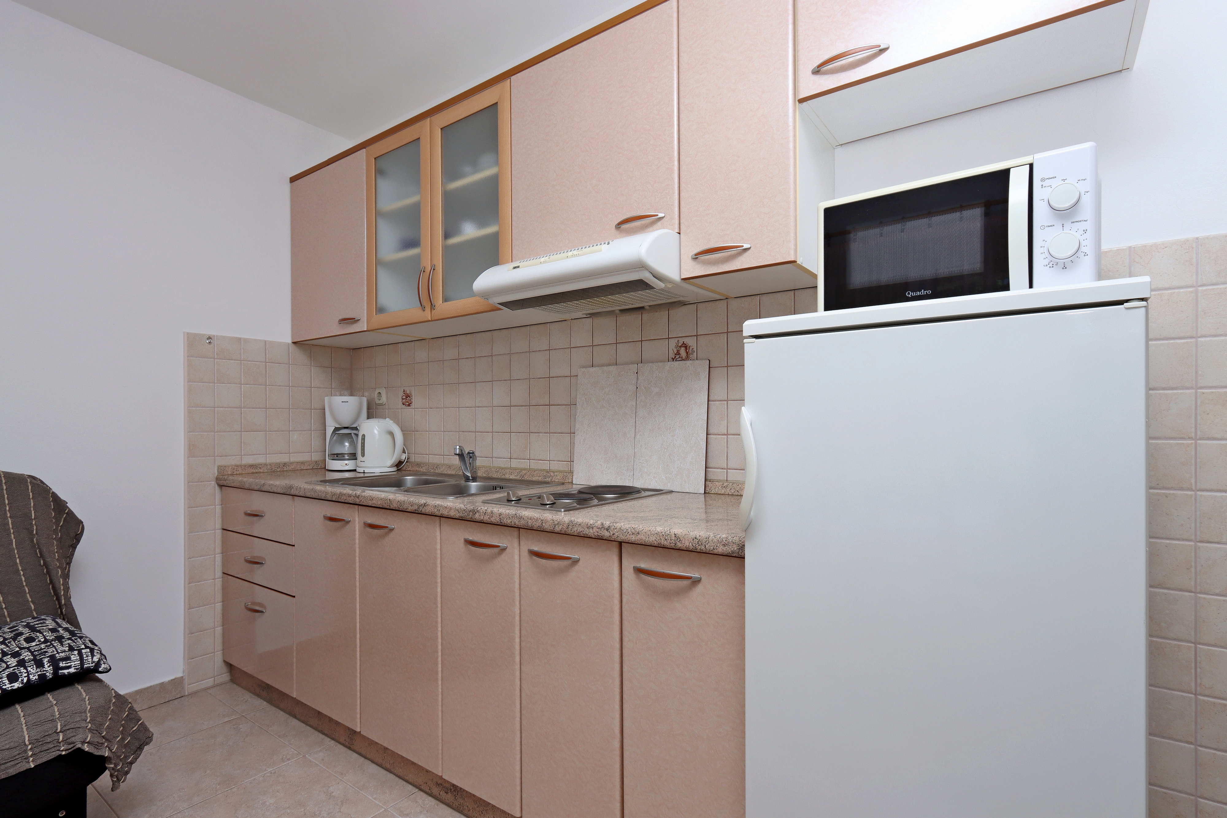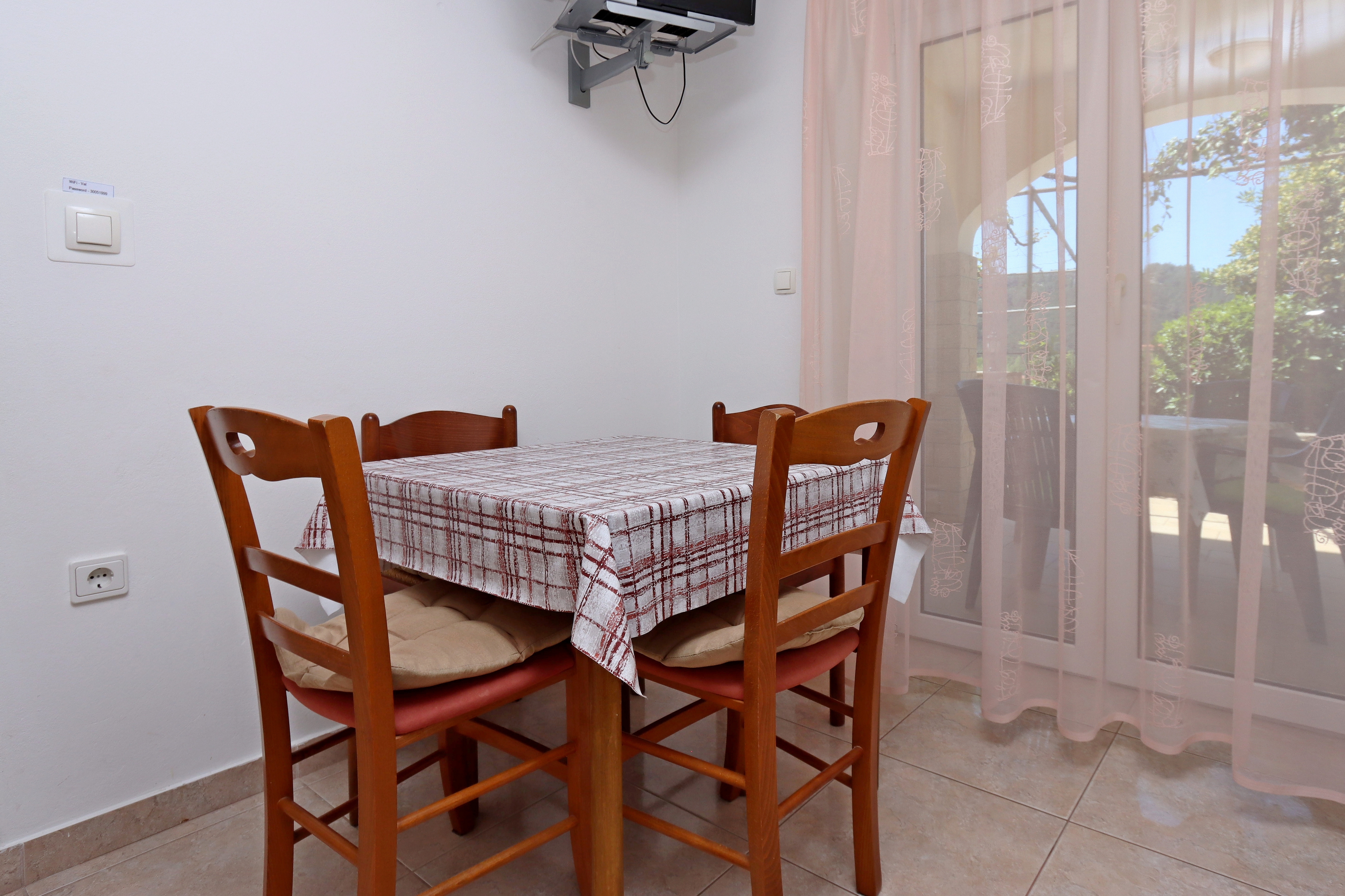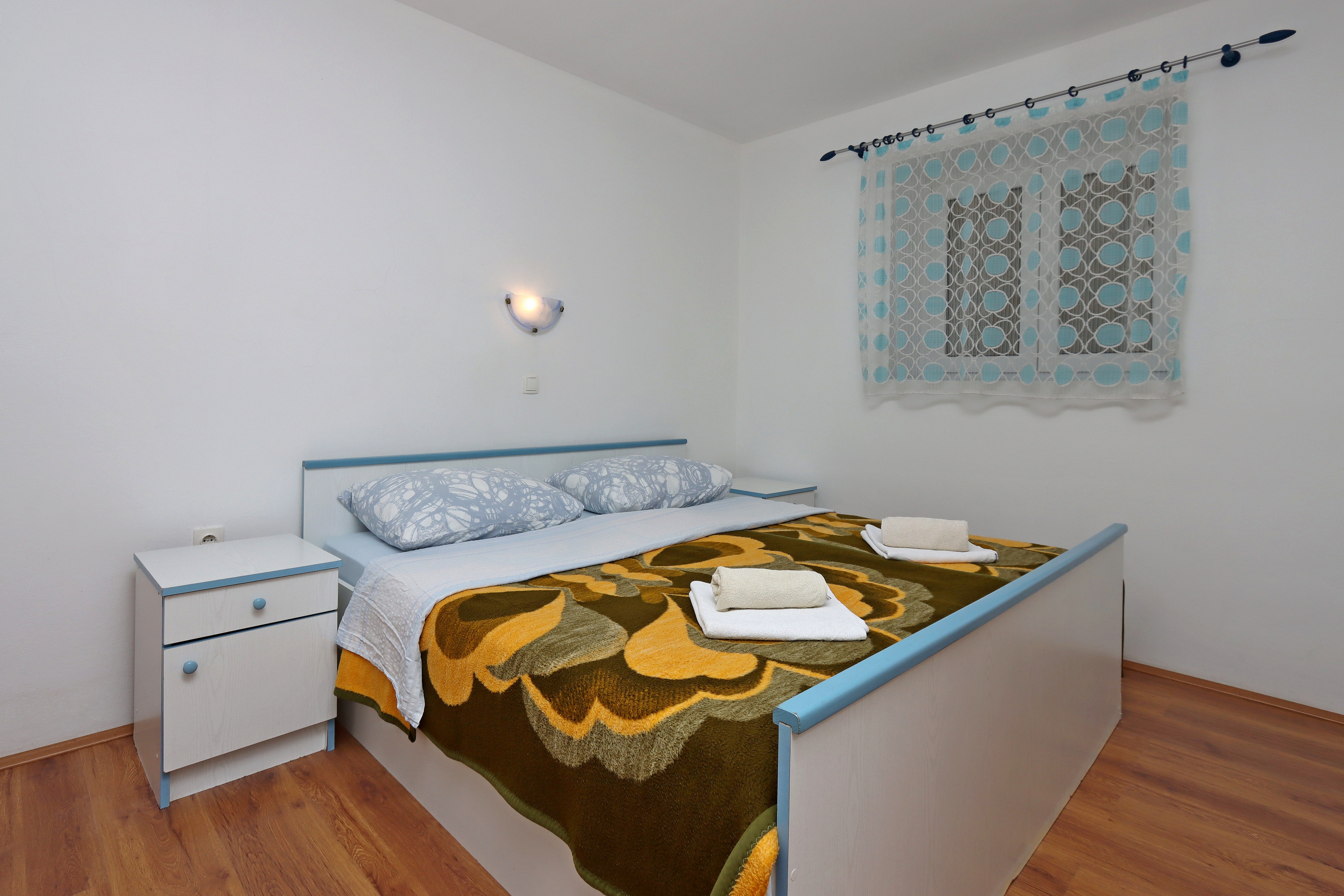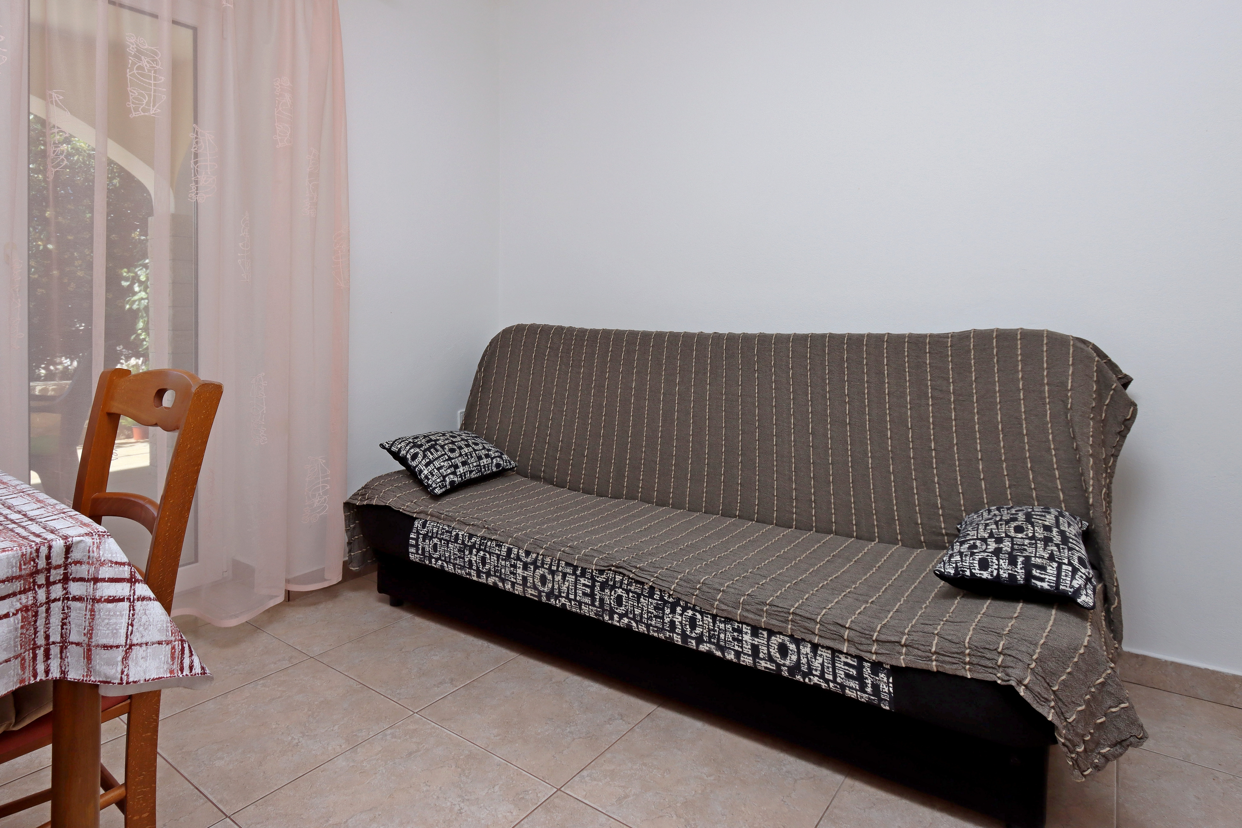 Apartment can accommodate 4 guests. Beds are situated in 1 sleeping rooms, but also in the dining room, within 28m2. Guests can use a private terrace to enjoy the warm summer evenings. Food can be prepared using barbecue which is shared with other guests too. INCLUDED IN THE PRICE: tourist tax, final cleaning, air-conditioning, garage, internet, laundry, baby cot. OPTIONAL ADDITIONAL COSTS: boat mooring (€20.00 per night). The availability of additional services for your chosen dates of stay, as well as their prices (if none are listed) must be checked ahead of time. Any additional services not shown in the price calculation are payable directly to the property owner and only if used by the visitor.