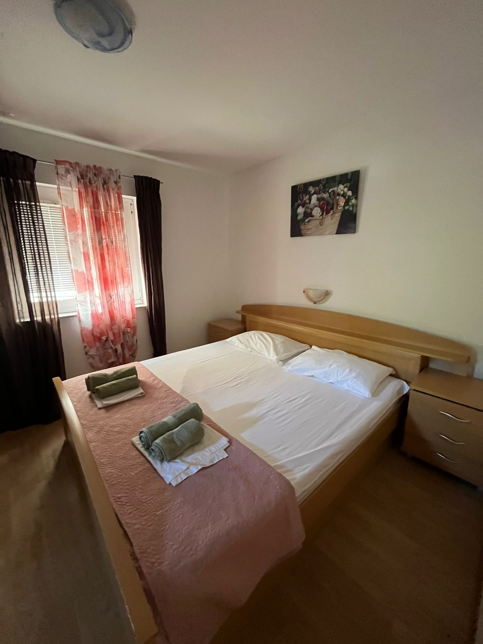Apartment can accommodate 5 guests. Beds are situated in 2 sleeping rooms, but also in the dining room, within 47m2. Guests can use a private balcony to enjoy the warm summer evenings. Food can be prepared using barbecue which is shared with other guests too. INCLUDED IN THE PRICE: tourist tax, final cleaning, air-conditioning, parking, internet, portable barbecue. OBLIGATORY ADDITIONAL COSTS: short stay fee (surcharge depending on a number of booked nights: 30% - 1, 20% - 2, 10% - 3). The availability of additional services for your chosen dates of stay, as well as their prices (if none are listed) must be checked ahead of time. Any additional services not shown in the price calculation are payable directly to the property owner and only if used by the visitor.