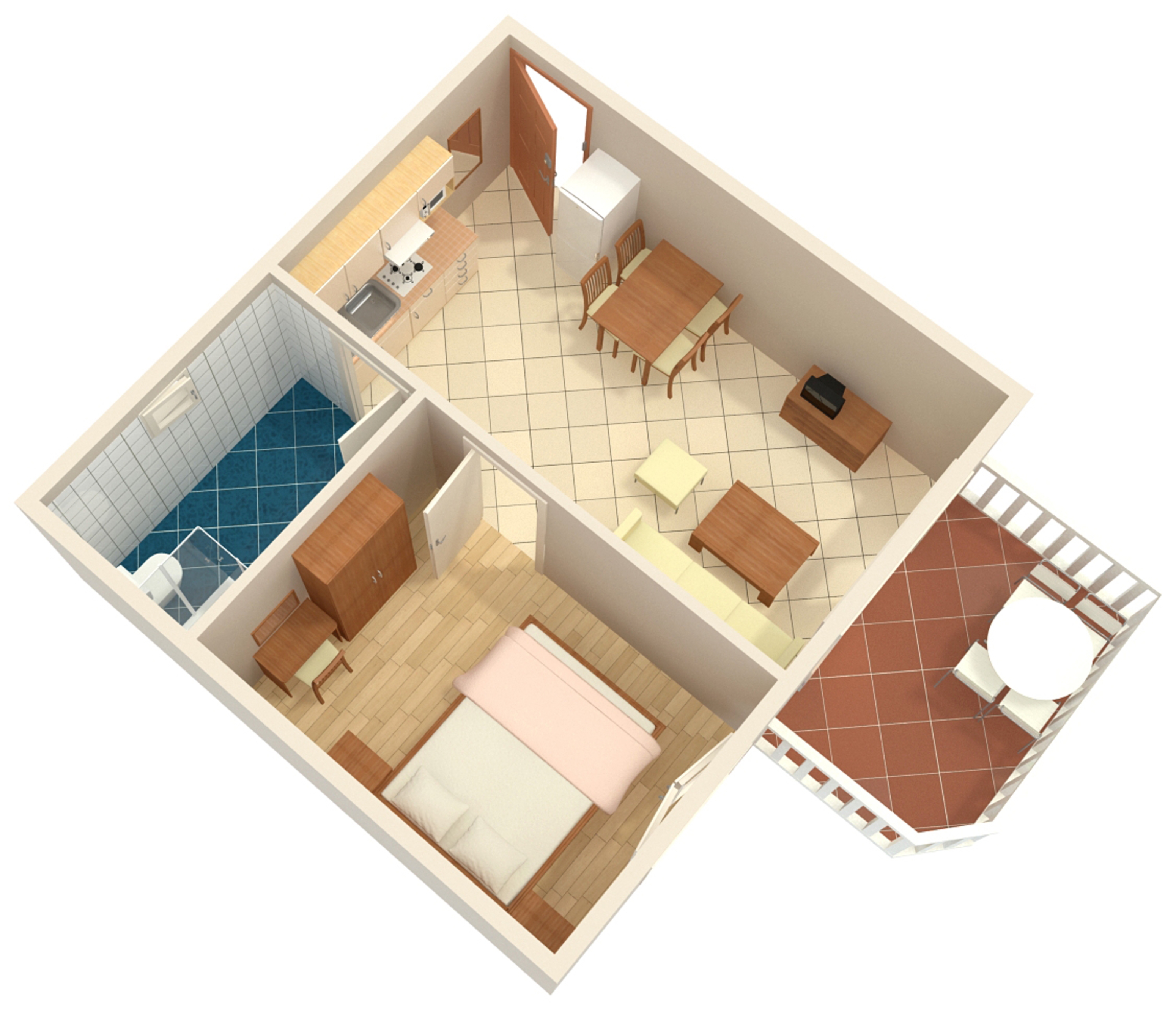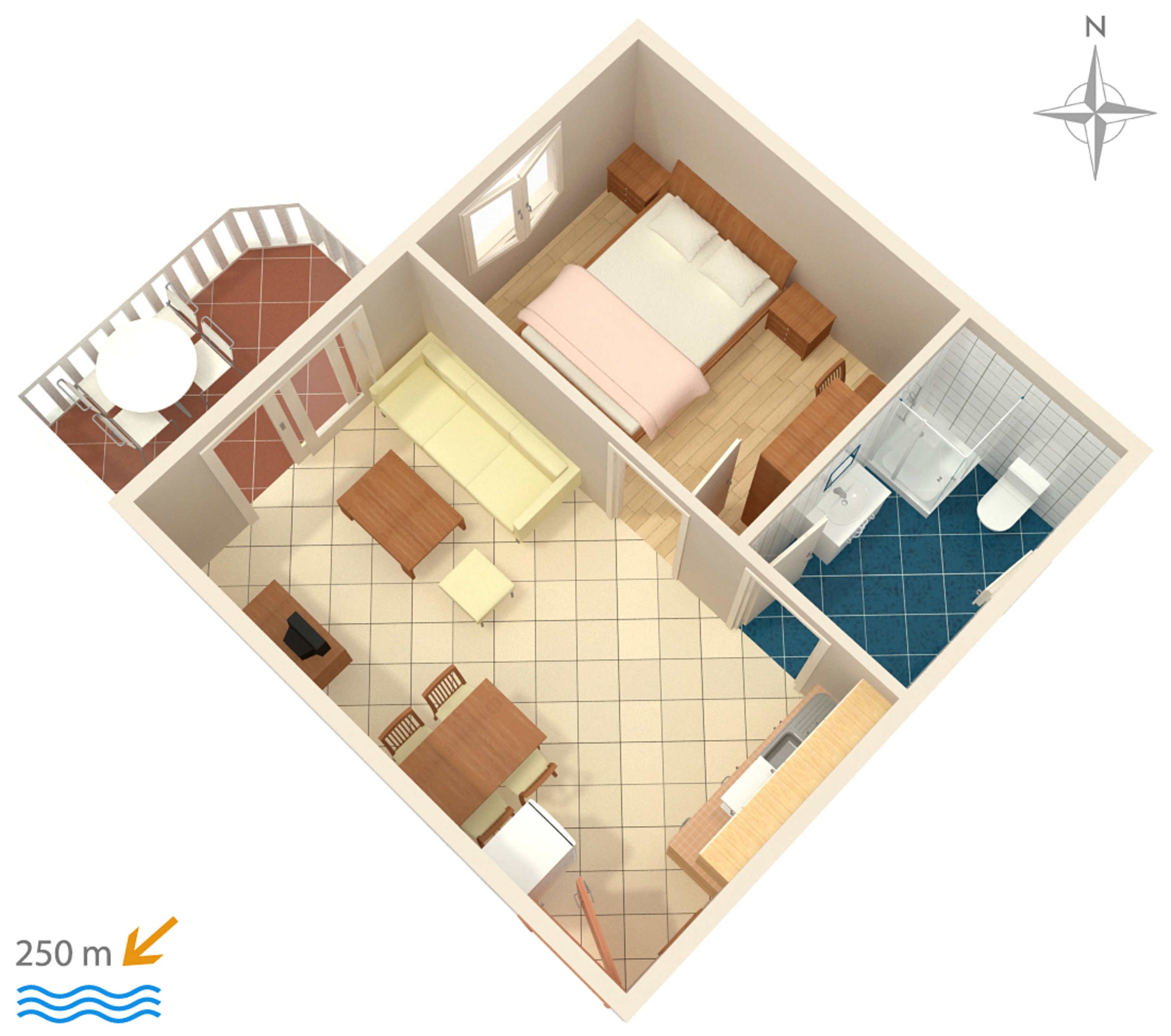 Apartment can accommodate 4 guests. Beds are situated in 1 sleeping rooms, but also in the living room, within 33m2. Guests can use a private terrace to enjoy the warm summer evenings. Food can be prepared using barbecue which is shared with other guests too. Shared pool is on disposal during stay. For the booked accommodation unit the deposit is paid directly to the owner upon check-in (deposit amount is displayed on the website) INCLUDED IN THE PRICE: final cleaning, air-conditioning, pool, parking, internet, hairdryer. OBLIGATORY ADDITIONAL COSTS: tourist tax (adults €0.93 - €1.90 nightperson, discount for children aged 12 - 17), deposit (€100.00 one-time payment). The availability of additional services for your chosen dates of stay, as well as their prices (if none are listed) must be checked ahead of time. Any additional services not shown in the price calculation are payable directly to the property owner and only if used by the visitor.
