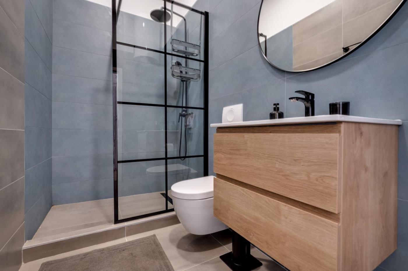 One-Bedroom Apartment. The air-conditioned apartment features 1 bedroom and 1 bathroom with a walk-in shower and a hairdryer. The kitchen is fitted with a stovetop, a refrigerator and an oven. The apartment offers a washing machine, soundproof walls, a tea and coffee maker, a flat-screen TV with streaming services, as well as garden views. The unit offers 1 bed.