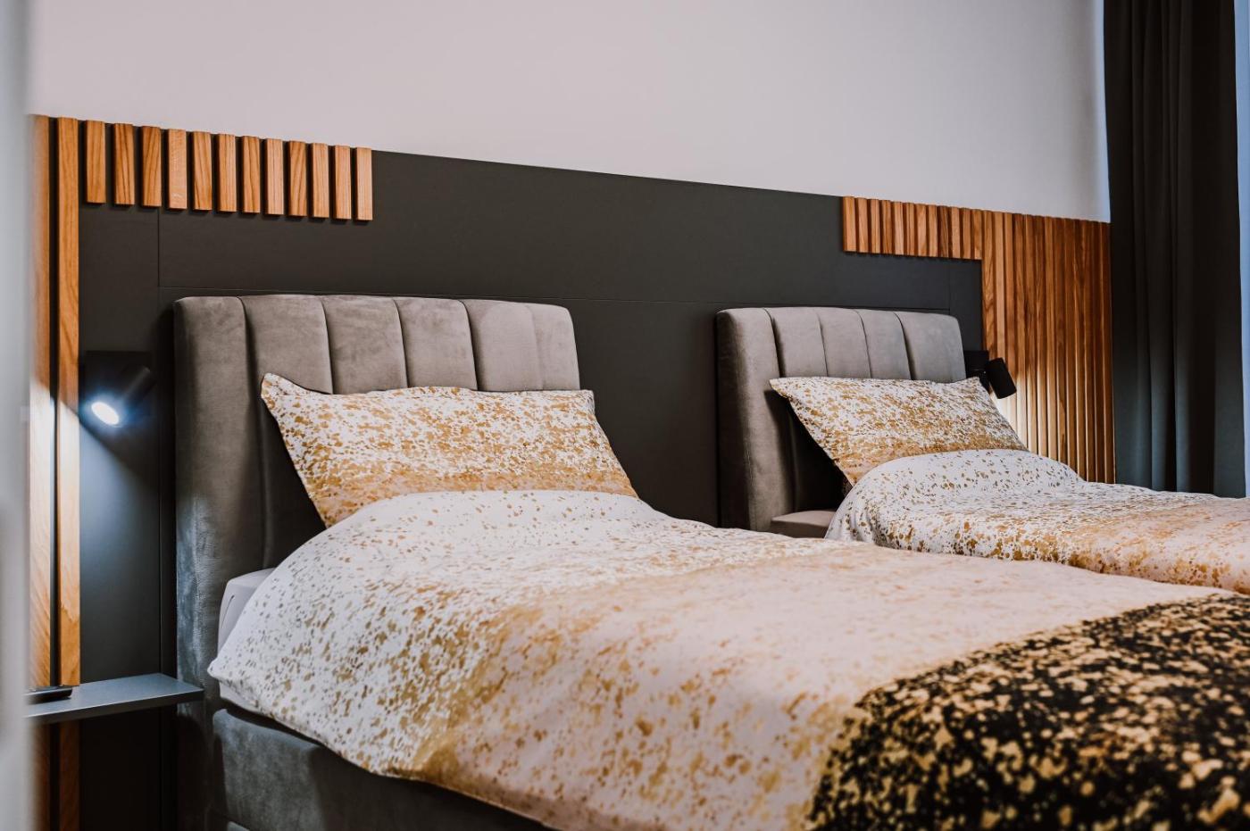 Two-Bedroom Apartment. This air-conditioned apartment features 1 living room, 2 separate bedrooms and 1 bathroom with a walk-in shower. Meals can be prepared in the well-fitted kitchen, which features a stovetop, a refrigerator, a dishwasher and kitchenware. The apartment features a flat-screen TV with streaming services, a washing machine, a tea and coffee maker, a seating area as well as city views. The unit has 3 beds.