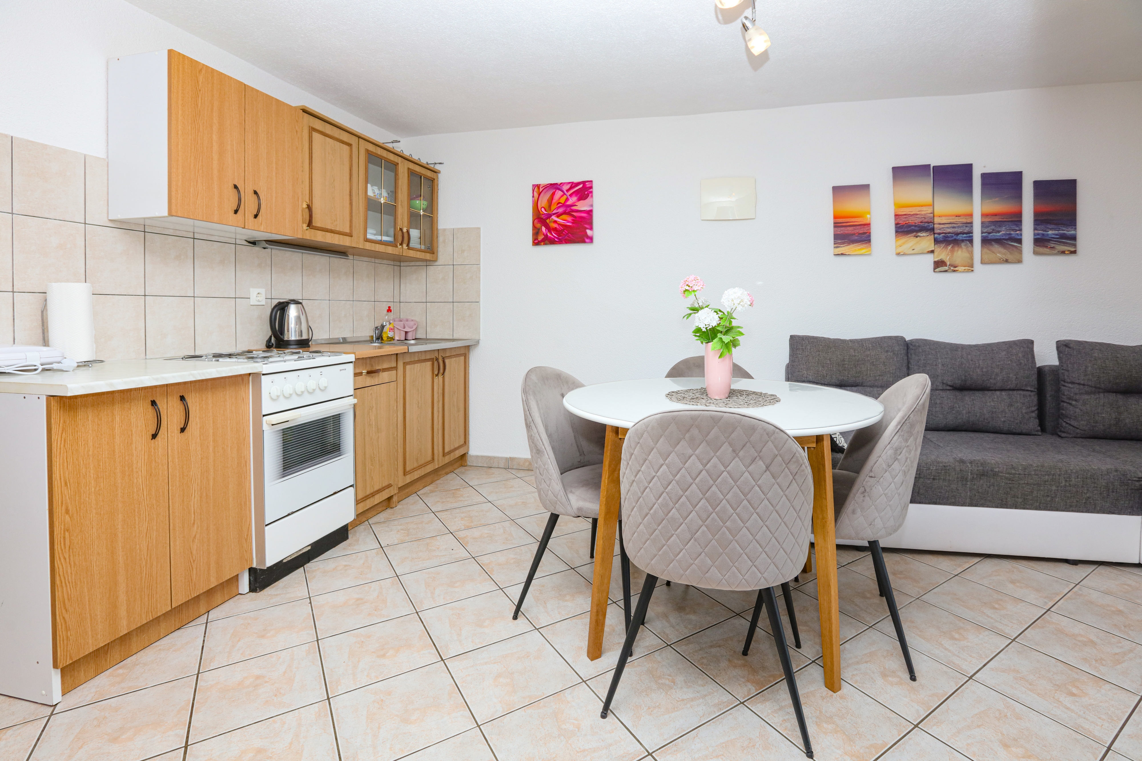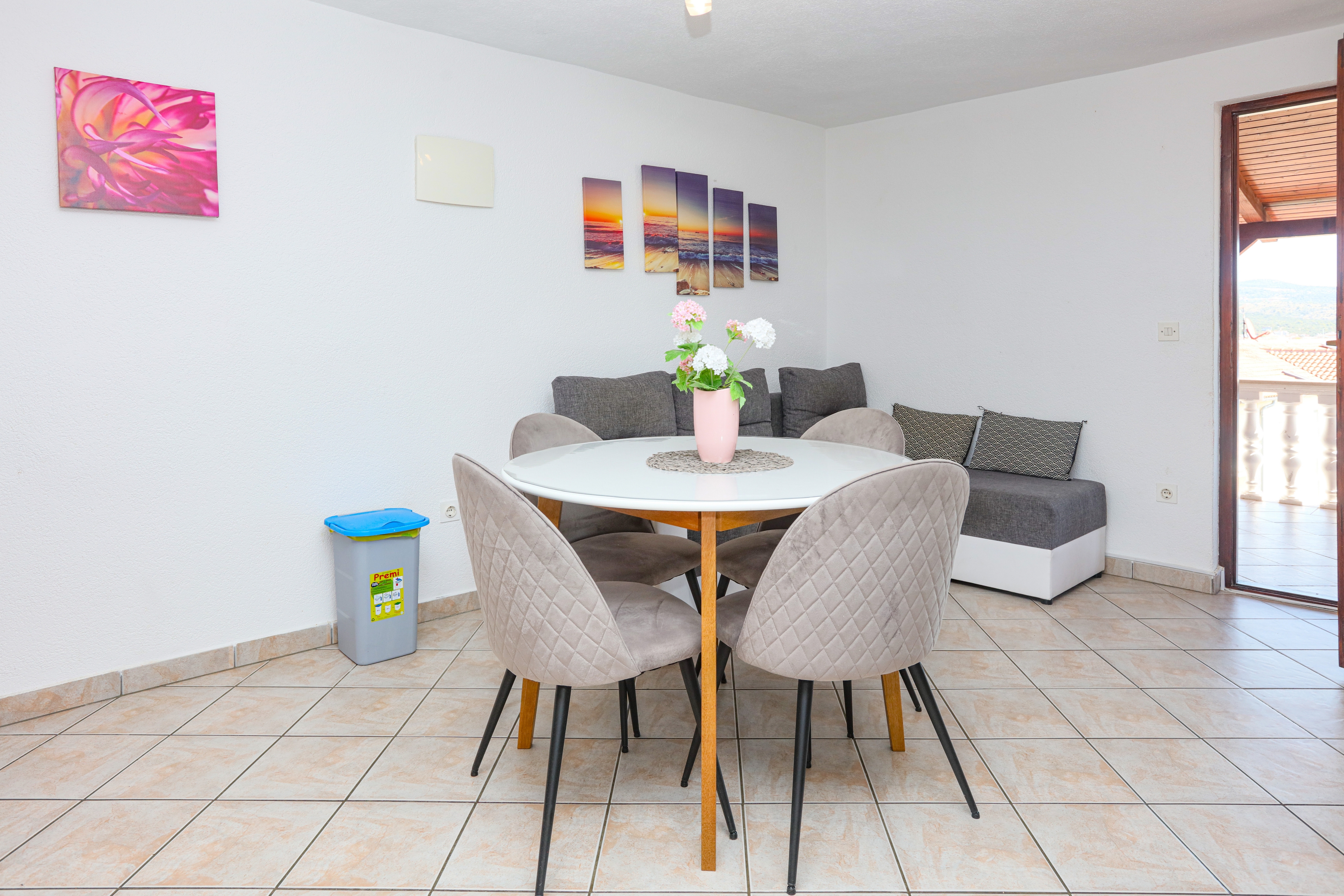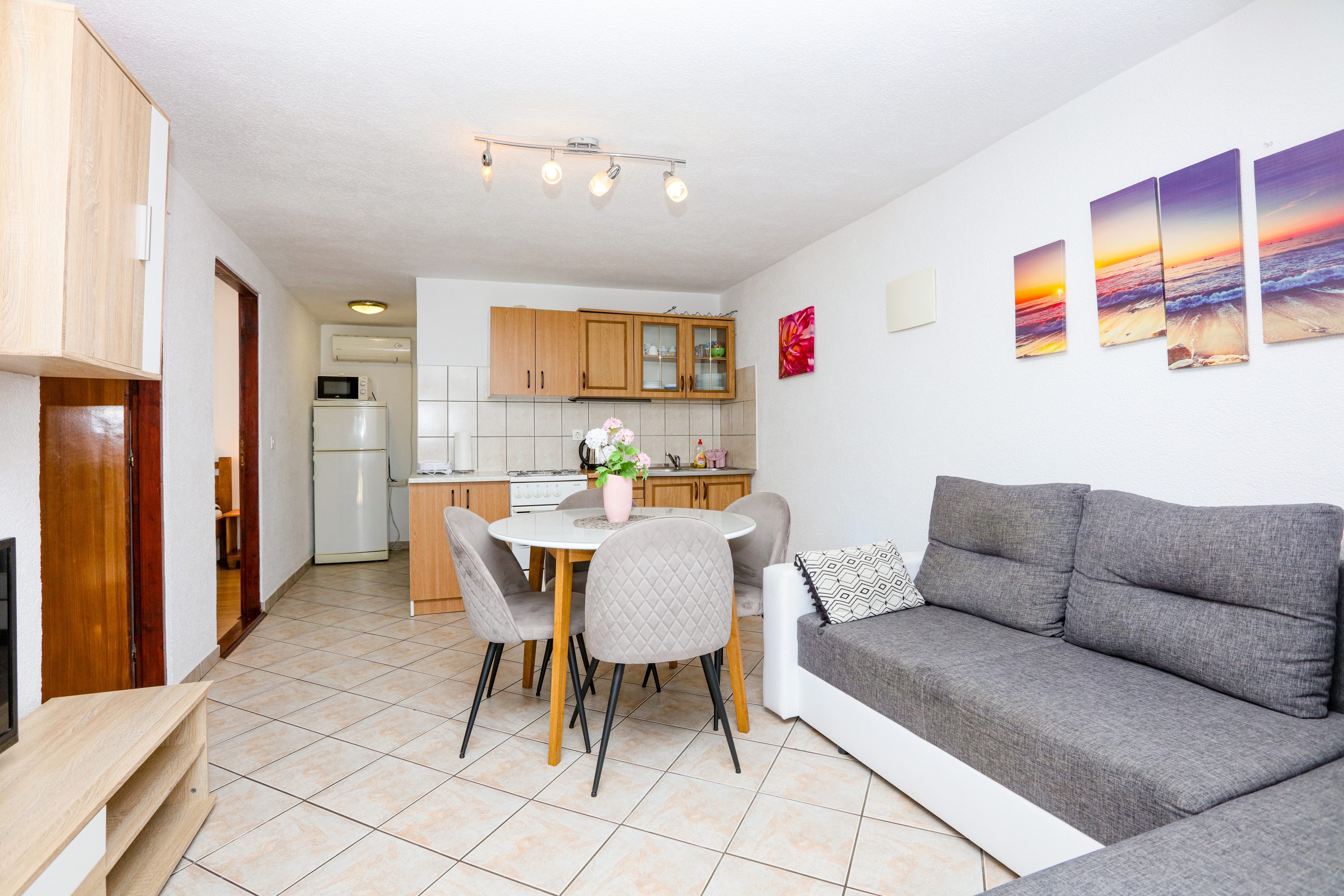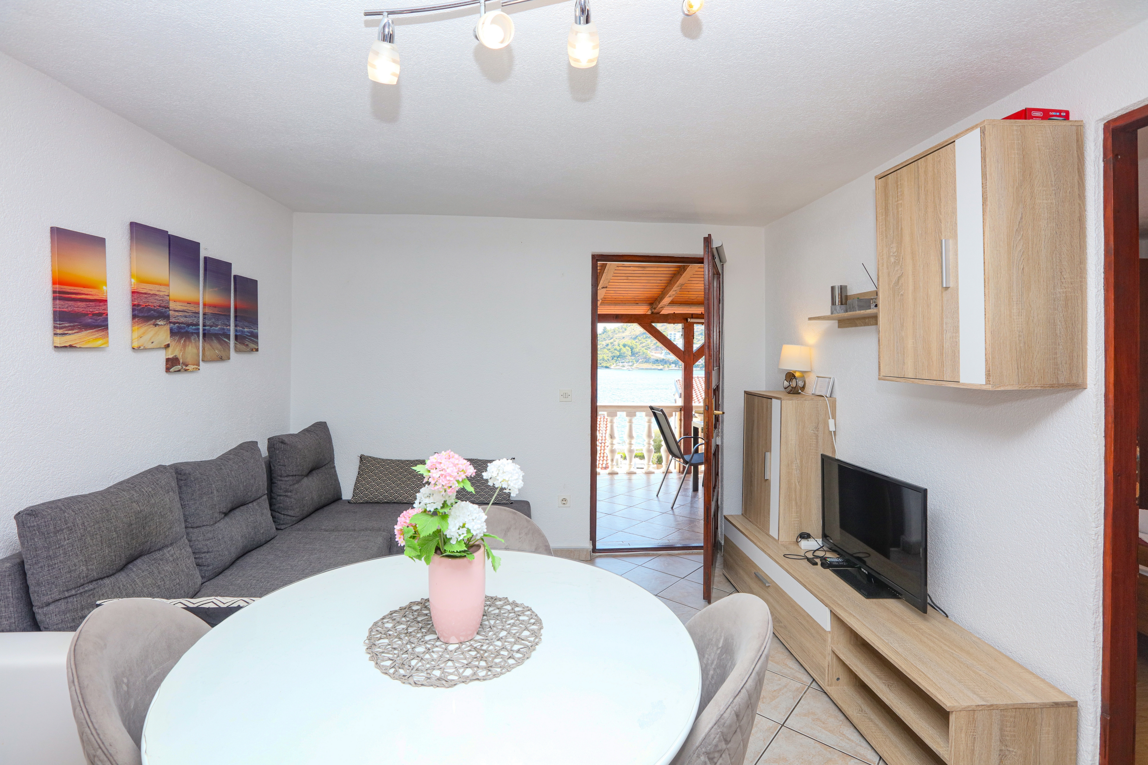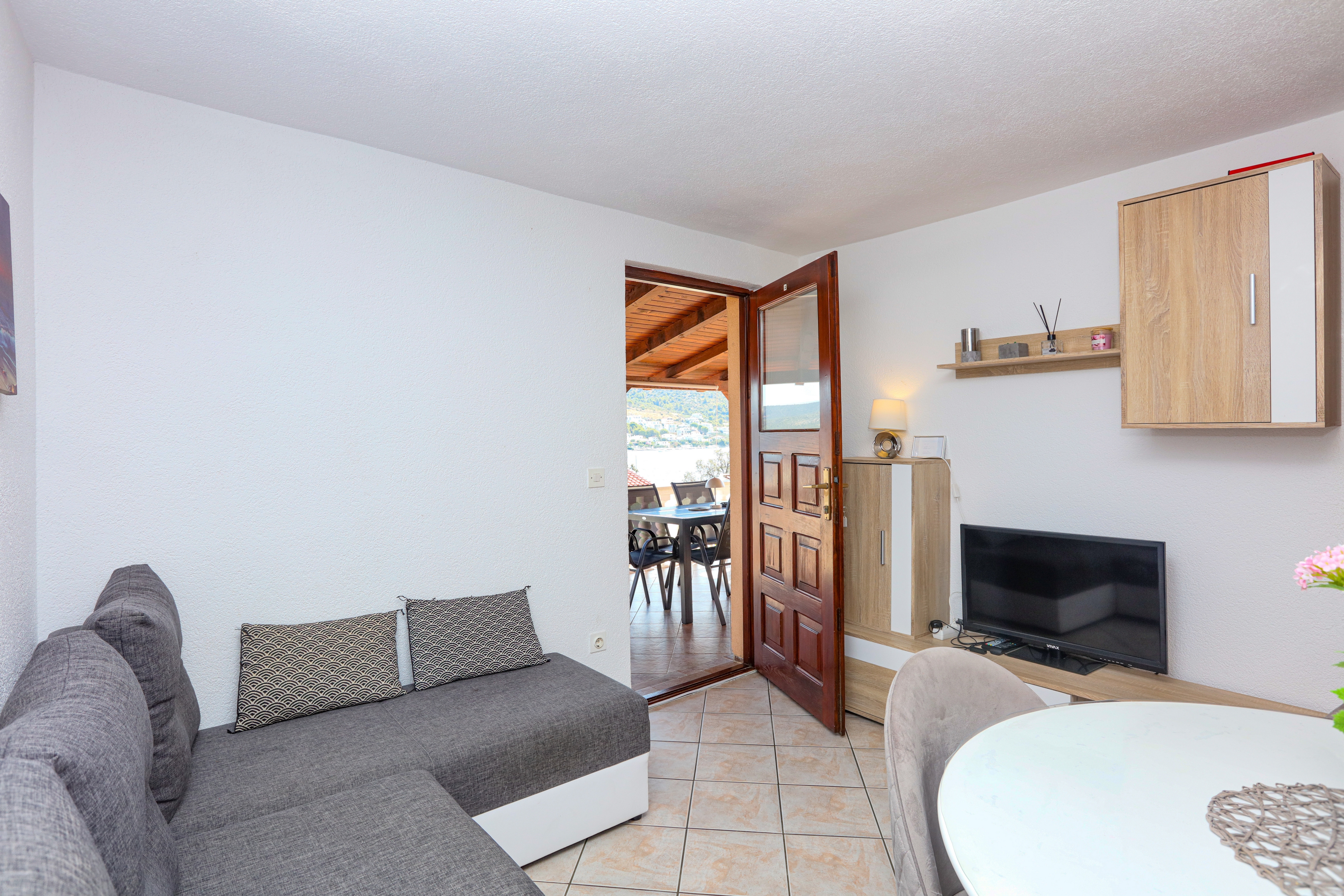 Apartment can accommodate 5 guests. Beds are situated in 2 sleeping rooms, but also in the living room, within 45m2. Guests can use a private terrace to enjoy the warm summer evenings. The apartment offers the sea view. Food can be prepared using barbecue which is shared with other guests too. INCLUDED IN THE PRICE: tourist tax, final cleaning, air-conditioning, parking, internet, baby cot, iron, ironing board, hairdryer. OBLIGATORY ADDITIONAL COSTS: short stay fee (surcharge depending on a number of booked nights: 30% - 1, 20% - 2, 10% - 3). The availability of additional services for your chosen dates of stay, as well as their prices (if none are listed) must be checked ahead of time. Any additional services not shown in the price calculation are payable directly to the property owner and only if used by the visitor. Discounts to the base price: free day 14=13 (for reservations of 14 or more days you get one free day for the stay until 31122026).