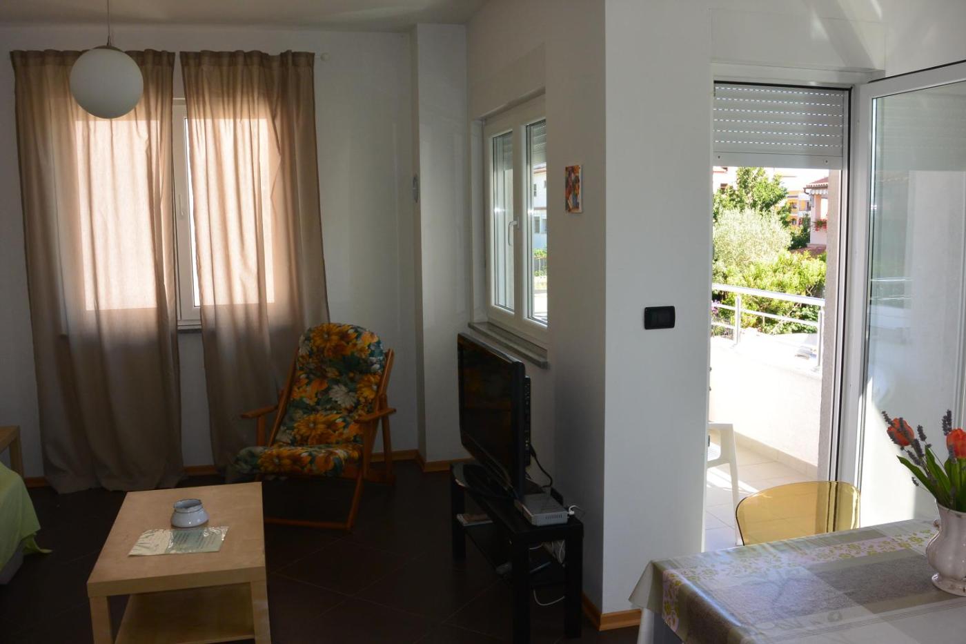 Situated in a quiet area of Rovinj, these apartments are decorated in white, with splashes of bright colour in the fabrics and kitchen furniture. The kitchen comes with a microwave and coffee machine.