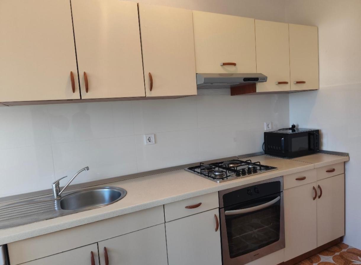 The apartment provides guests with a terrace, garden views, a seating area, satellite flat-screen TV, a fully equipped kitchen with a microwave and a toaster, and a private bathroom with bath and a hair dryer. A fridge, a stovetop and kitchenware are also provided, as well as a coffee machine and a kettle. At the apartment complex, each unit is equipped with bed linen and towels.