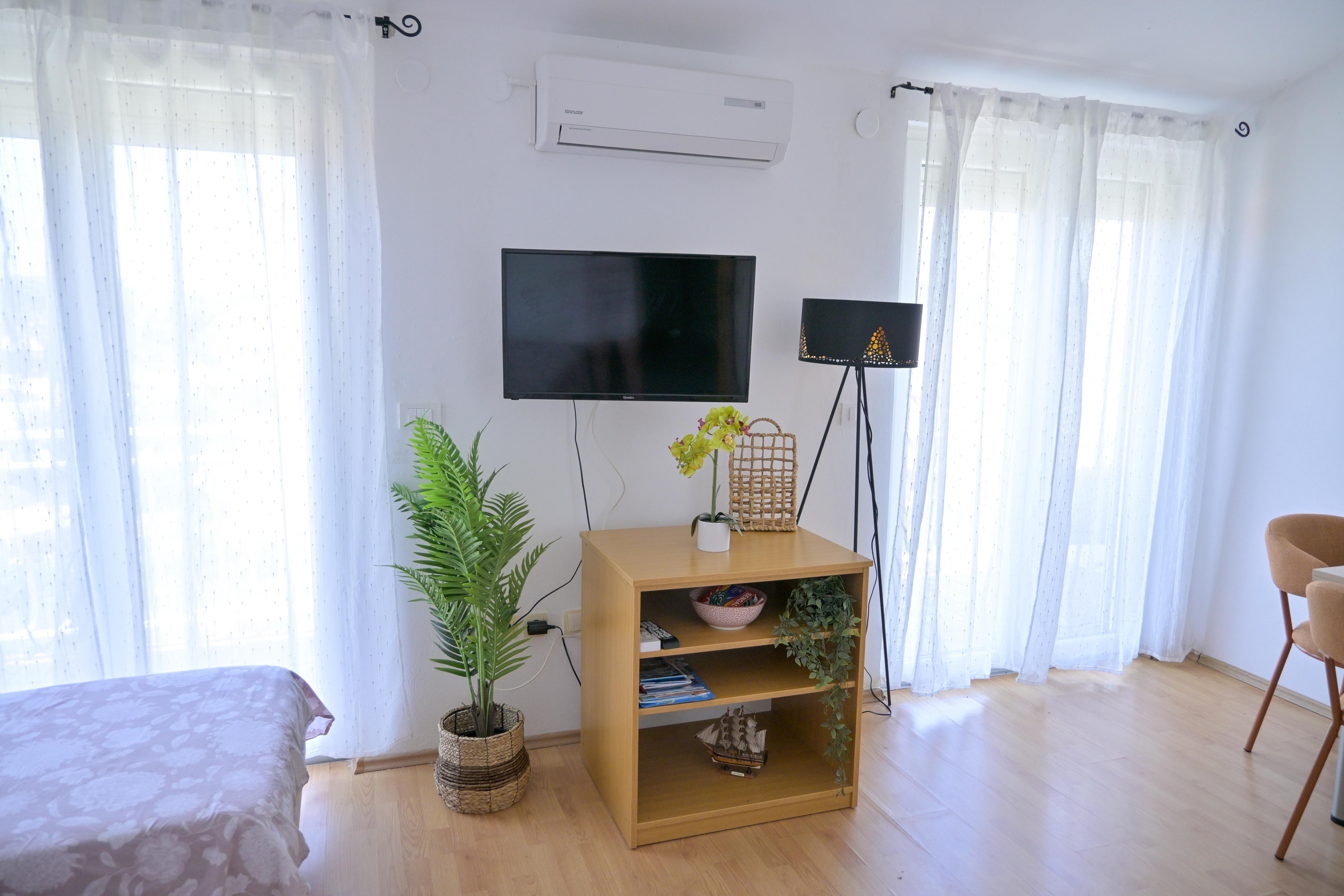 Studio flat can accommodate 2 guests. Beds are situated in 1 sleeping rooms, within 23m2. Guests can use a private balcony to enjoy the warm summer evenings. Food can be prepared using barbecue which is shared with other guests too. INCLUDED IN THE PRICE: tourist tax, final cleaning, parking, internet, iron, ironing board, hairdryer. OBLIGATORY ADDITIONAL COSTS: short stay fee (surcharge depending on a number of booked nights: 30% - 1, 20% - 2, 10% - 3). OPTIONAL ADDITIONAL COSTS: air-conditioning (€10.00 per night). The availability of additional services for your chosen dates of stay, as well as their prices (if none are listed) must be checked ahead of time. Any additional services not shown in the price calculation are payable directly to the property owner and only if used by the visitor.