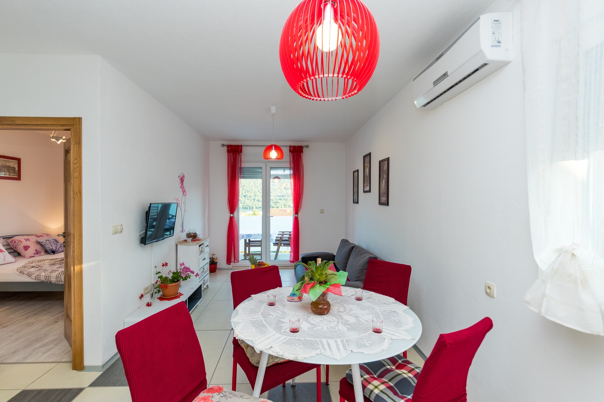Apartment can accommodate 4 guests. Beds are situated in 1 sleeping rooms, but also in the living room, within 34m2. Guests can use a private terrace to enjoy the warm summer evenings. The apartment offers the sea view. Food can be prepared using barbecue which is shared with other guests too. This accommodation unit welcomes pets at an additional charge. INCLUDED IN THE PRICE: tourist tax, final cleaning, air-conditioning, parking, internet, iron, ironing board, hairdryer, portable barbecue. OBLIGATORY ADDITIONAL COSTS: short stay fee (surcharge depending on a number of booked nights: 30% - 1, 20% - 2, 10% - 3). OPTIONAL ADDITIONAL COSTS: laundry (€5.00 washing), pets (€5.00 per night). The availability of additional services for your chosen dates of stay, as well as their prices (if none are listed) must be checked ahead of time. Any additional services not shown in the price calculation are payable directly to the property owner and only if used by the visitor. Discounts to the base price: free day 14=13 (for reservations of 14 or more days you get one free day for the stay until 31122026).