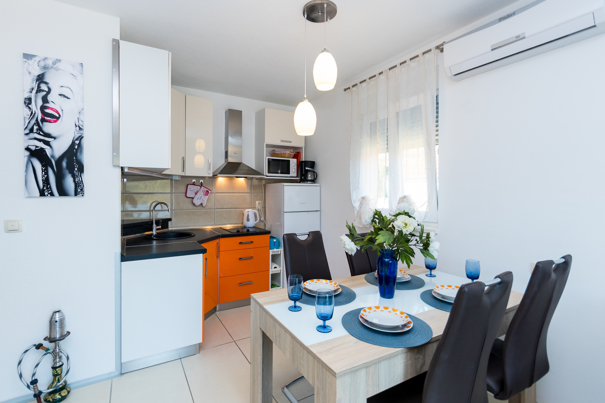 Apartment can accommodate 4 guests. Beds are situated in 1 sleeping rooms, but also in the living room, within 34m2. Guests can use a private terrace to enjoy the warm summer evenings. The apartment offers the sea view. Food can be prepared using barbecue which is shared with other guests too. This accommodation unit welcomes pets at an additional charge. Notthe rooms of the booked accommodation unit are connectedone whole. INCLUDED IN THE PRICE: tourist tax, final cleaning, air-conditioning, parking, internet, iron, ironing board, hairdryer, portable barbecue. OBLIGATORY ADDITIONAL COSTS: short stay fee (surcharge depending on a number of booked nights: 30% - 1, 20% - 2, 10% - 3). OPTIONAL ADDITIONAL COSTS: laundry (€5.00 washing), pets (€5.00 per night). The availability of additional services for your chosen dates of stay, as well as their prices (if none are listed) must be checked ahead of time. Any additional services not shown in the price calculation are payable directly to the property owner and only if used by the visitor. Discounts to the base price: free day 14=13 (for reservations of 14 or more days you get one free day for the stay until 31122026).