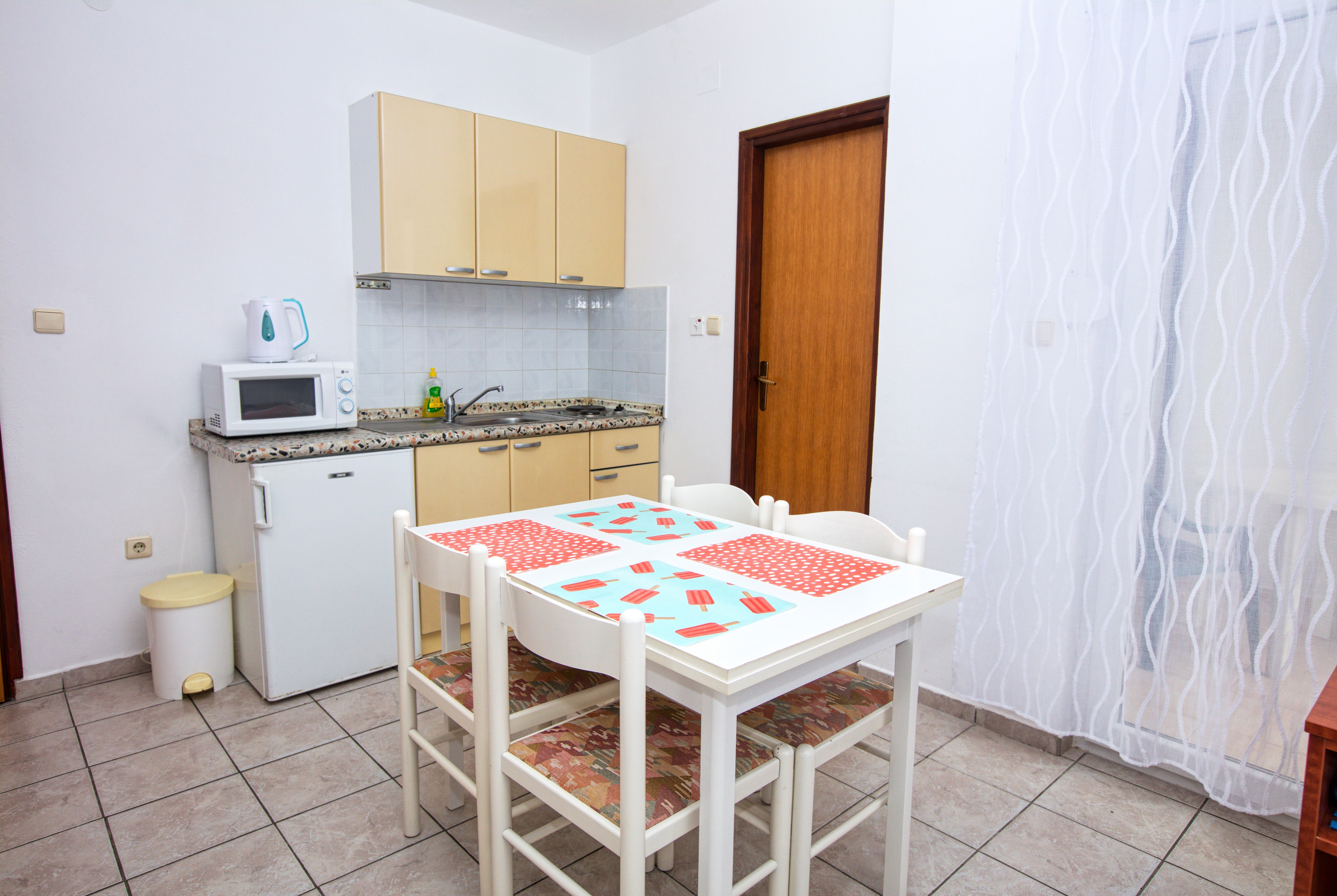 Studio flat can accommodate 2 guests. Beds are situated in 1 sleeping rooms, within 24m2. Guests can use a private terrace to enjoy the warm summer evenings. Food can be prepared using barbecue which is shared with other guests too. INCLUDED IN THE PRICE: tourist tax, final cleaning, air-conditioning, parking, internet, bicycle, baby cot, iron, ironing board, hairdryer. OBLIGATORY ADDITIONAL COSTS: short stay fee (surcharge depending on a number of booked nights: 30% - 1, 20% - 2, 10% - 3). OPTIONAL ADDITIONAL COSTS: additional bed (€6.00 per night). The availability of additional services for your chosen dates of stay, as well as their prices (if none are listed) must be checked ahead of time. Any additional services not shown in the price calculation are payable directly to the property owner and only if used by the visitor. Discounts to the base price: free day 14=13 (for reservations of 14 or more days you get one free day for the stay until 31122026).