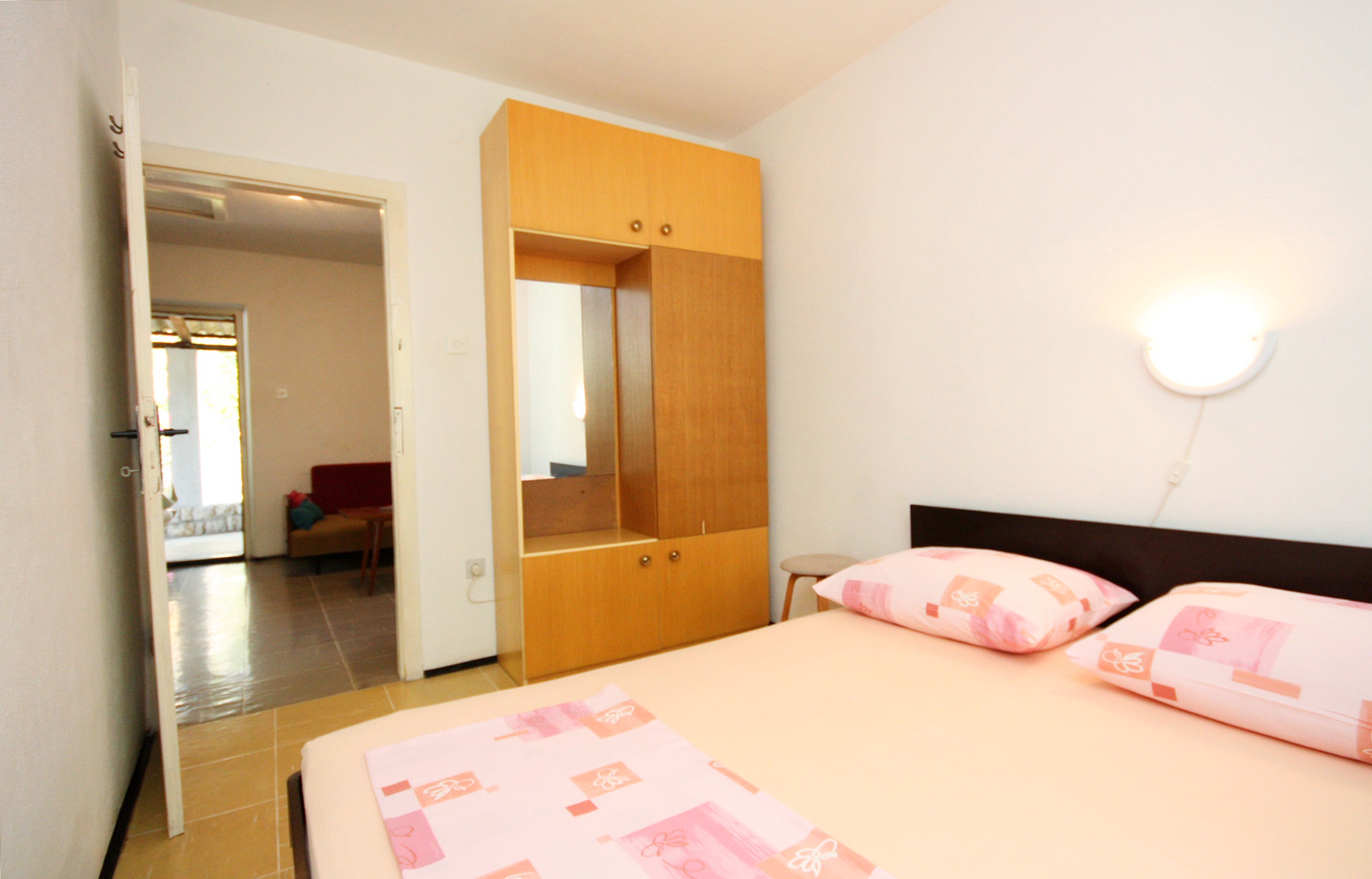 Apartment can accommodate 6 guests. Beds are situated in 3 sleeping rooms, within 70m2. Guests can use a private terrace to enjoy the warm summer evenings. The apartment offers the sea view. Food can be prepared using barbecue which is shared with other guests too. This accommodation unit welcomes pets at an additional charge. INCLUDED IN THE PRICE: tourist tax, final cleaning, air-conditioning, parking, internet, iron, ironing board, hairdryer. OBLIGATORY ADDITIONAL COSTS: short stay fee (surcharge depending on a number of booked nights: 30% - 1, 20% - 2, 10% - 3). OPTIONAL ADDITIONAL COSTS: pets (€5.00 per night). The availability of additional services for your chosen dates of stay, as well as their prices (if none are listed) must be checked ahead of time. Any additional services not shown in the price calculation are payable directly to the property owner and only if used by the visitor. Discounts to the base price: free day 14=13 (for reservations of 14 or more days you get one free day for the stay until 31122026).