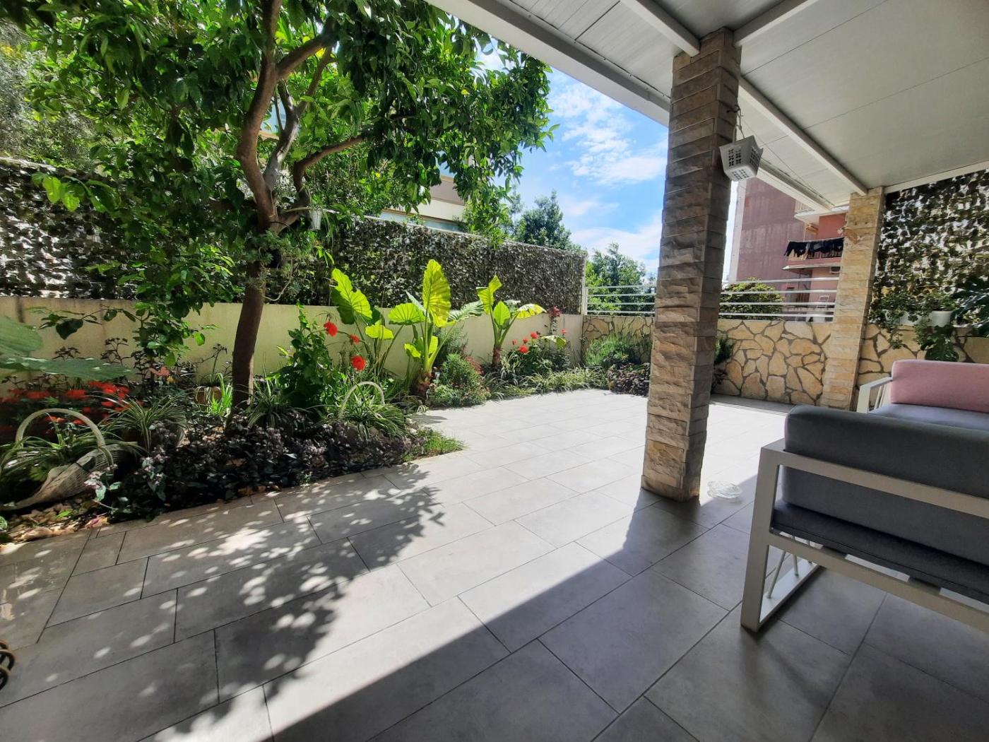The apartment comes with 1 bedroom, 1 bathroom, bed linen, towels, a flat-screen TV with satellite channels, a dining area, a fully equipped kitchen, and a terrace with garden views. The unit at the property features a shower and a dressing room. For added privacy, the accommodation has a private entrance and soundproofing.