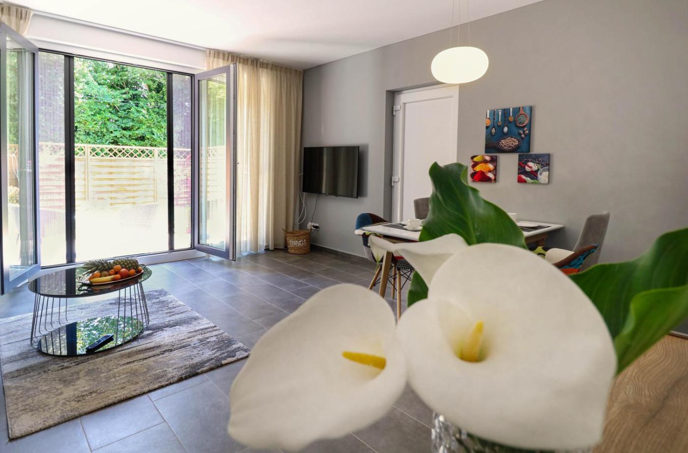 One-Bedroom Apartment. Featuring a private entrance, this air-conditioned apartment is comprised of 1 living room, 1 separate bedroom and 1 bathroom with a shower and a hairdryer. The well-fitted kitchen features a stovetop, a refrigerator, a dishwasher and kitchenware. Boasting a terrace with garden views, this apartment also offers a washing machine and a flat-screen TV with streaming services. The unit offers 2 beds. ;