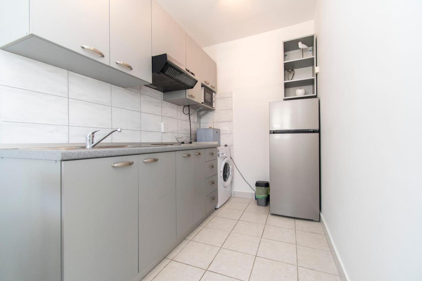 Two-Bedroom Apartment. The apartment features 2 bedrooms and 1 bathroom with a hairdryer and free toiletries. Guests will find a stovetop, a refrigerator, kitchenware and a microwave in the kitchenette. The apartment also has a barbecue. The apartment offers air conditioning, a washing machine, a coffee machine as well as a balcony with sea views. The unit offers 2 beds.