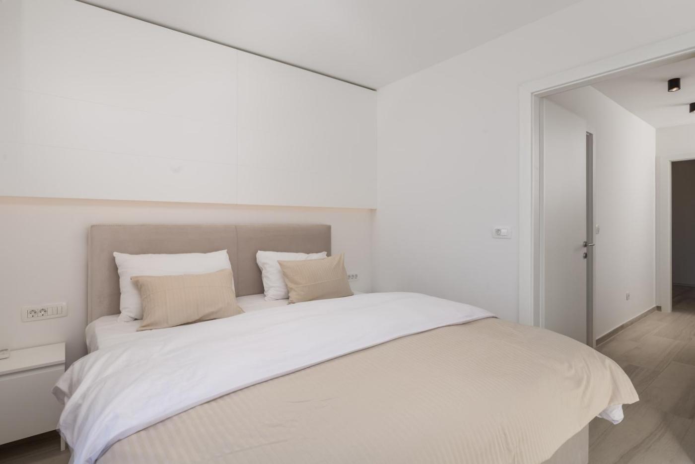 Two-Bedroom Apartment. This apartments special feature is the pool with a view. Featuring a private entrance, this air-conditioned apartment comprises 1 living room, 2 separate bedrooms and 2 bathrooms with a shower and a bidet. Guests will find a stovetop, a refrigerator, a dishwasher and kitchenware in the kitchen. The apartment also provides guests with a barbecue. The spacious apartment provides a washing machine, a coffee machine, a seating area as well as a terrace with sea views. The unit offers 6 beds.