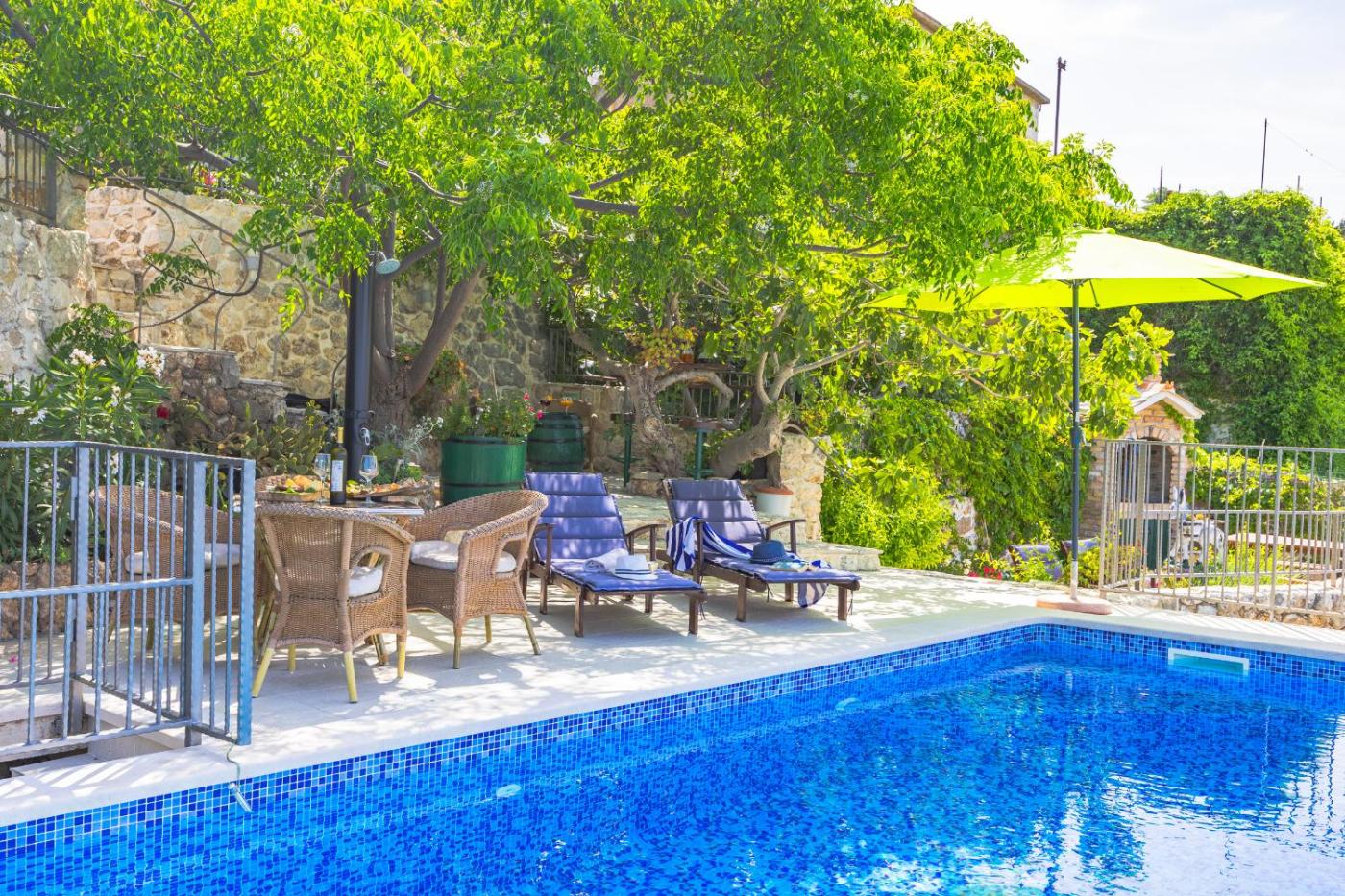 Three-Bedroom House. This holiday homes standout features are the private pool and fireplace. Featuring a private entrance, this air-conditioned holiday home comprises 1 living room, 3 separate bedrooms and 2 bathrooms with a shower and a hairdryer. Guests will find a stovetop, a refrigerator, a dishwasher and kitchenware in the fully equipped kitchen. The holiday home also provides guests with a barbecue. Boasting a terrace with sea views, this holiday home also provides a washing machine and a flat-screen TV with satellite channels. The unit offers 3 beds.