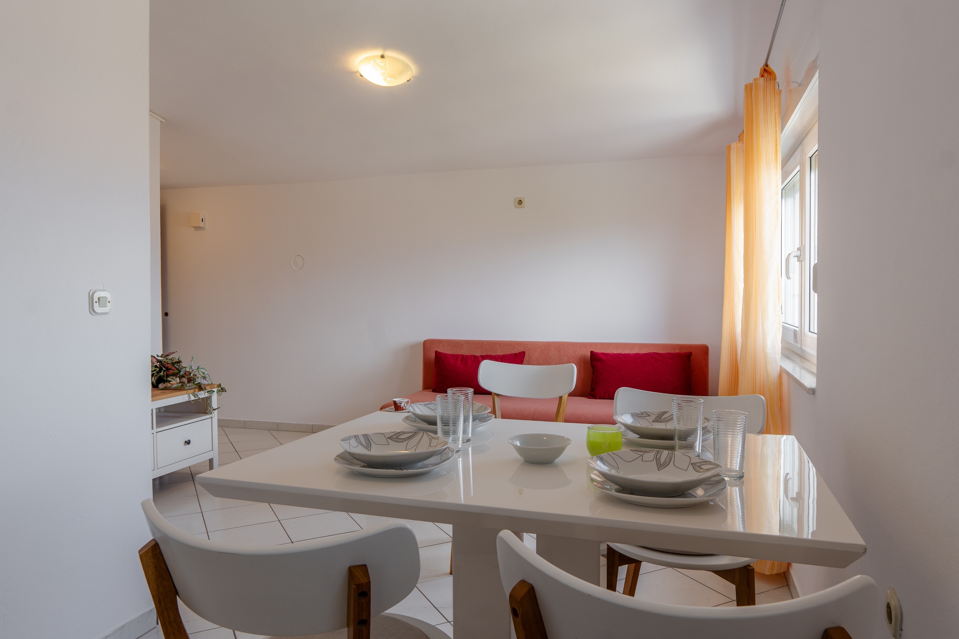 Apartment can accommodate 3 guests. Beds are situated in 1 sleeping rooms, but also in the living room, within 29m2. Guests can use a private terrace to enjoy the warm summer evenings. Food can be prepared using barbecue which is shared with other guests too. INCLUDED IN THE PRICE: tourist tax, final cleaning, air-conditioning, parking, internet, hairdryer. The availability of additional services for your chosen dates of stay, as well as their prices (if none are listed) must be checked ahead of time. Any additional services not shown in the price calculation are payable directly to the property owner and only if used by the visitor.