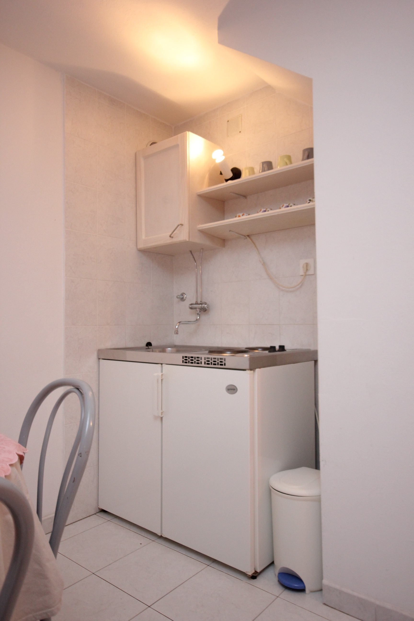 Studio flat can accommodate 2 guests. Beds are situated in 1 sleeping rooms, within 26m2. Guests can use a private terrace to enjoy the warm summer evenings. The studio offers the sea view. Food can be prepared using barbecue which is shared with other guests too. This accommodation unit welcomes pets at an additional charge. INCLUDED IN THE PRICE: tourist tax, final cleaning, air-conditioning, parking, internet, baby cot, iron, ironing board, hairdryer, 1 bed for children (included in the price). OBLIGATORY ADDITIONAL COSTS: short stay fee (surcharge depending on a number of booked nights: 30% - 1, 20% - 2, 10% - 3). OPTIONAL ADDITIONAL COSTS: pets (€5.00 per night). The availability of additional services for your chosen dates of stay, as well as their prices (if none are listed) must be checked ahead of time. Any additional services not shown in the price calculation are payable directly to the property owner and only if used by the visitor. Discounts to the base price: free day 14=13 (for reservations of 14 or more days you get one free day for the stay until 31122026).