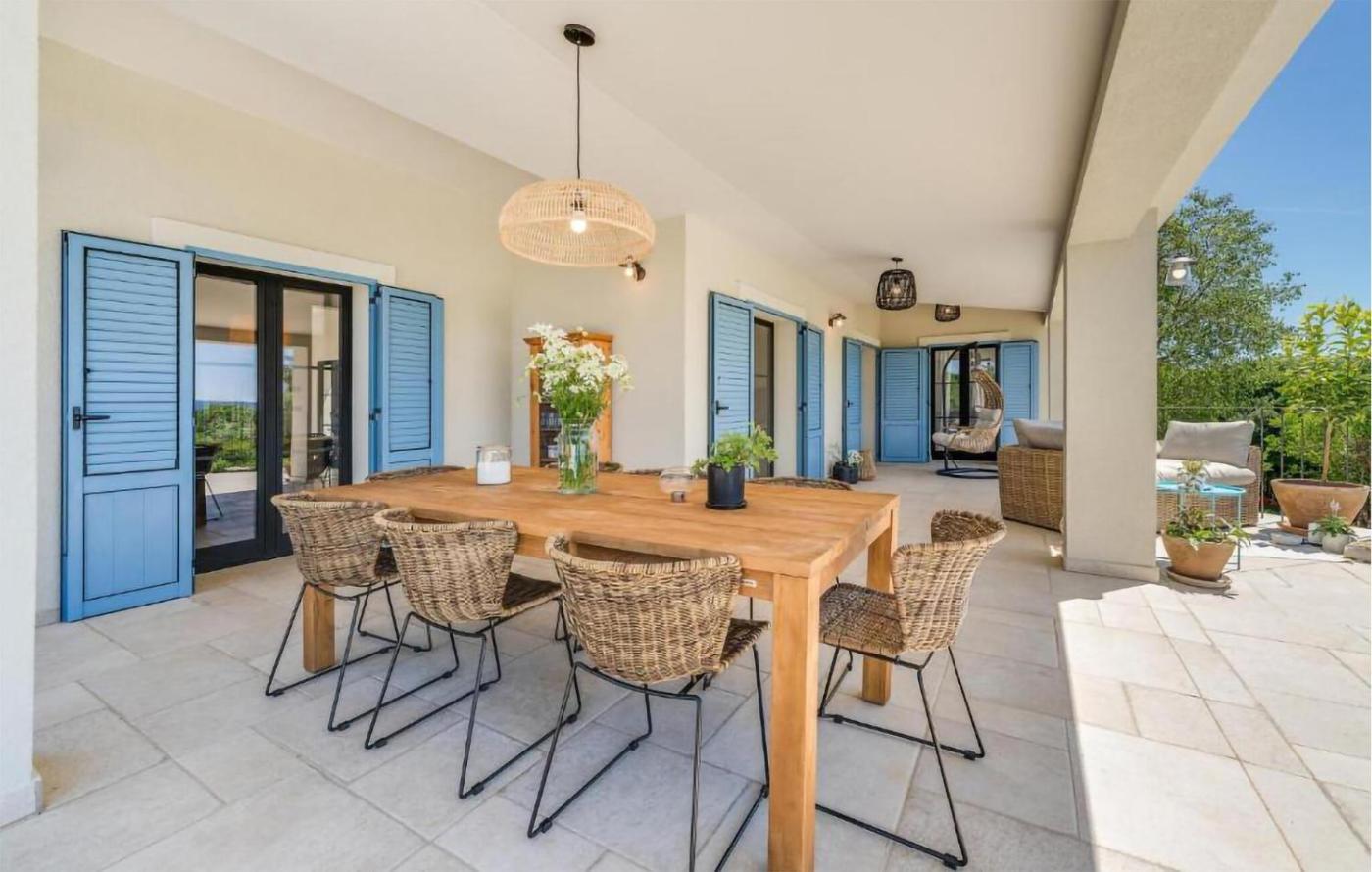 Four-Bedroom Holiday Home. The private pool and fireplace are the standout features of this holiday home. Boasting a private entrance, this air-conditioned holiday home features 1 living room, 4 separate bedrooms and 4 bathrooms with a shower and a hairdryer. Guests will find a refrigerator, a dishwasher, kitchenware and an oven in the well-equipped kitchen. The holiday home also comes with a barbecue. The spacious holiday home features a TV with streaming services, a washing machine, a tea and coffee maker, a dining area as well as sea views. The unit has 4 beds and 1 futon.
