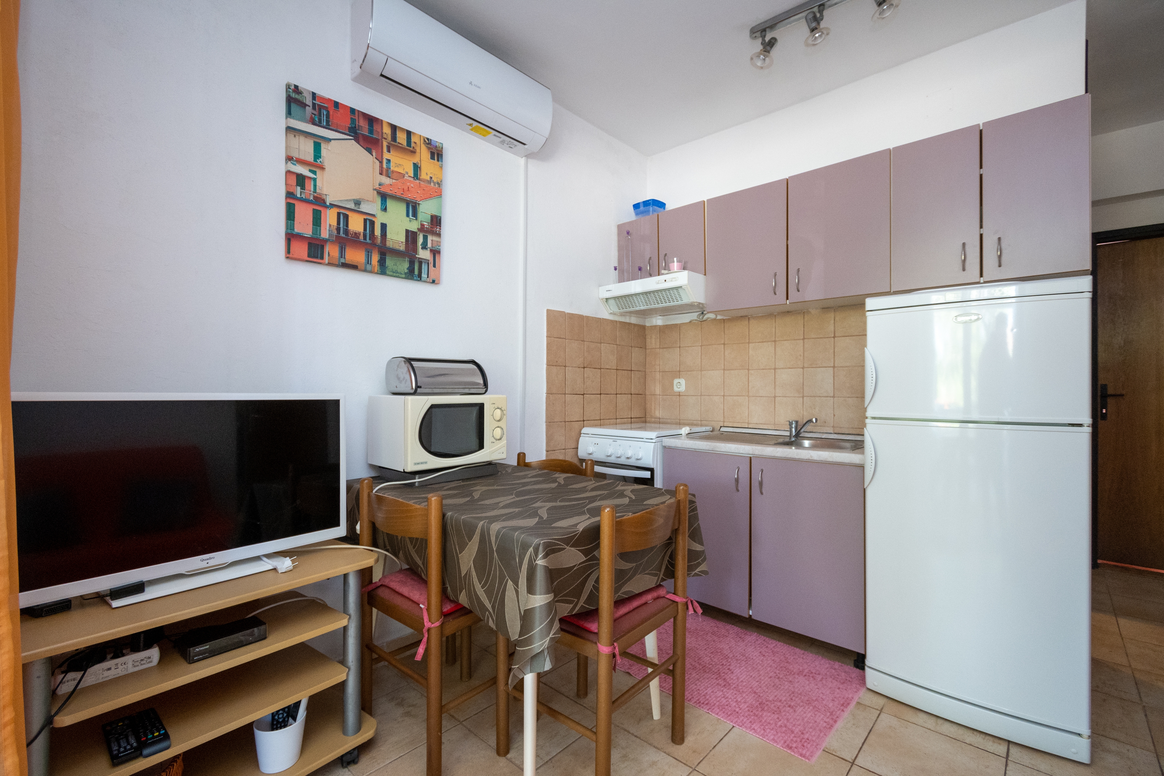 Studio flat can accommodate 3 guests. Beds are situated in 1 sleeping rooms, within 25m2. Guests can use a private terrace to enjoy the warm summer evenings. The studio offers the sea view. Food can be prepared using barbecue which is shared with other guests too. This accommodation unit welcomes pets at an additional charge. INCLUDED IN THE PRICE: tourist tax, final cleaning, air-conditioning, parking, internet. OBLIGATORY ADDITIONAL COSTS: short stay fee (surcharge depending on a number of booked nights: 30% - 1, 20% - 2, 10% - 3). OPTIONAL ADDITIONAL COSTS: pets (€5.00 per night). The availability of additional services for your chosen dates of stay, as well as their prices (if none are listed) must be checked ahead of time. Any additional services not shown in the price calculation are payable directly to the property owner and only if used by the visitor.