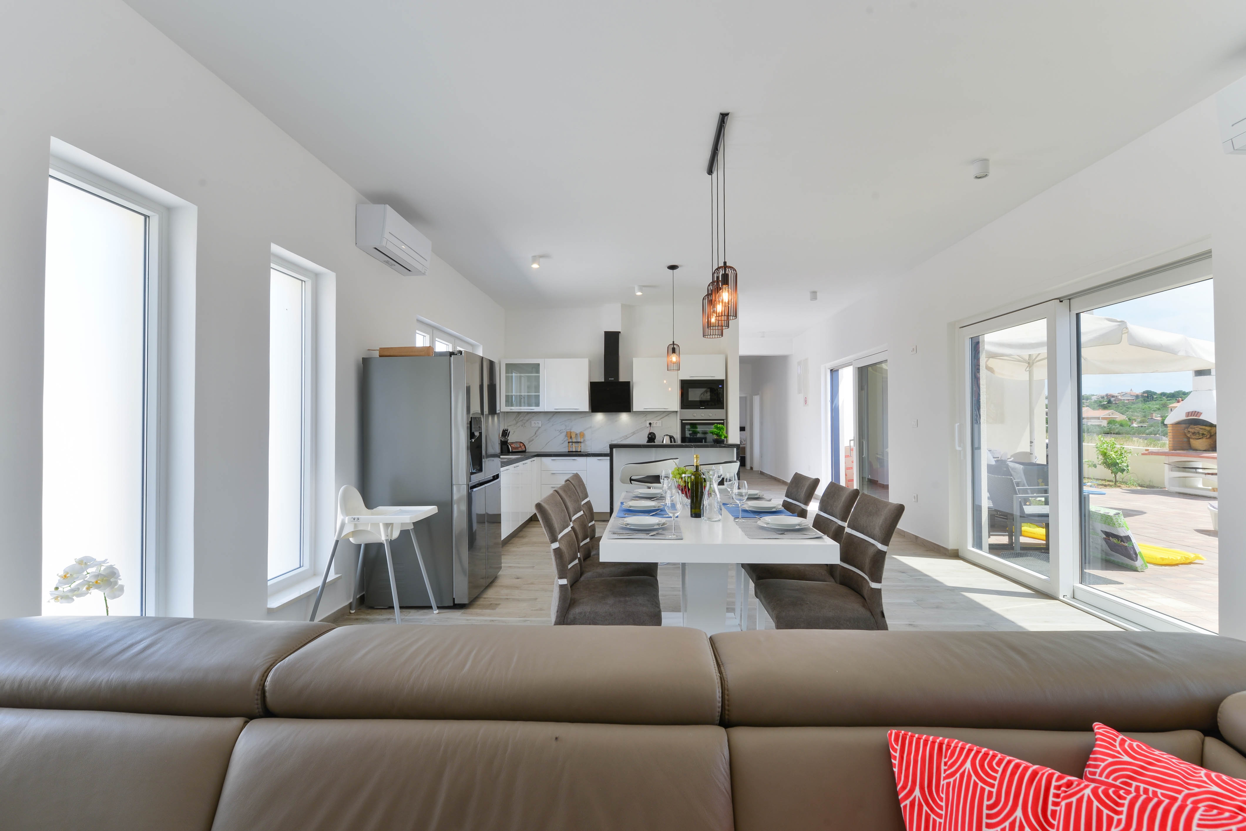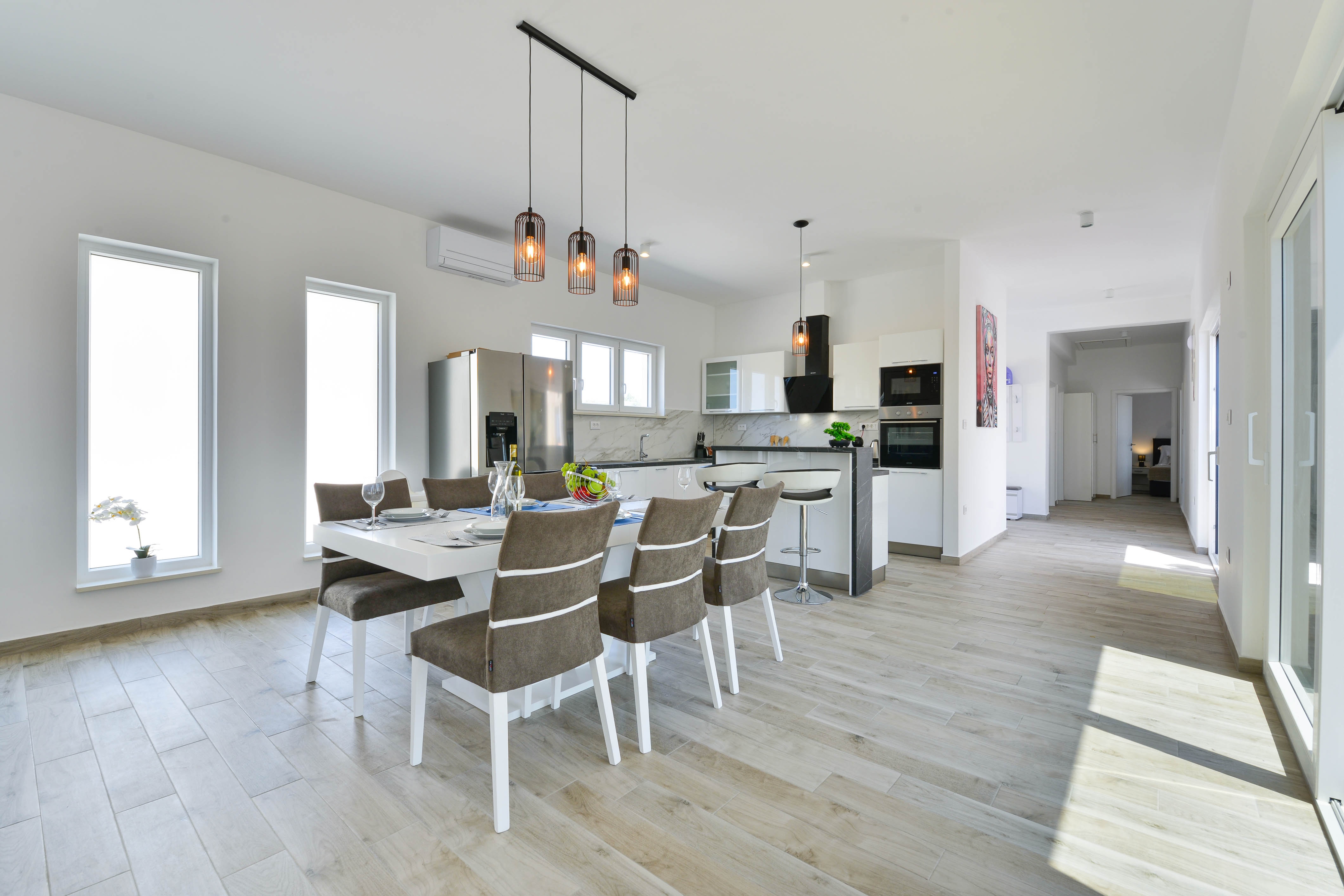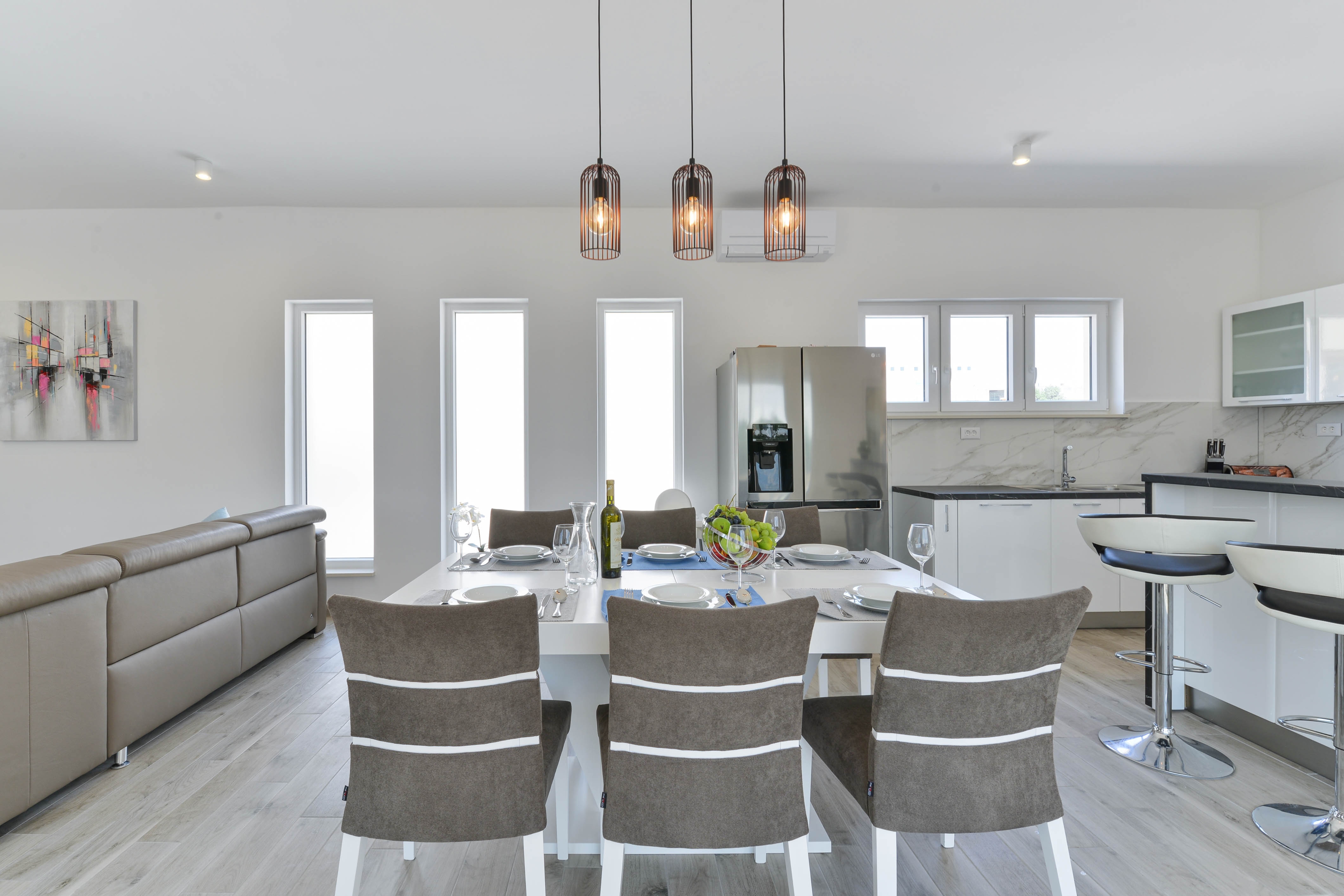 House can accommodate 8 guests. Beds are situated in 4 sleeping rooms, within 130m2. Guests can use a private terrace to enjoy the warm summer evenings. For full enjoyment and relaxation there is a private barbecue for this accommodation guests only. Shared pool is on disposal during stay. INCLUDED IN THE PRICE: tourist tax, final cleaning, air-conditioning, pool, parking, internet, baby cot, iron, ironing board, hairdryer. The availability of additional services for your chosen dates of stay, as well as their prices (if none are listed) must be checked ahead of time. Any additional services not shown in the price calculation are payable directly to the property owner and only if used by the visitor.