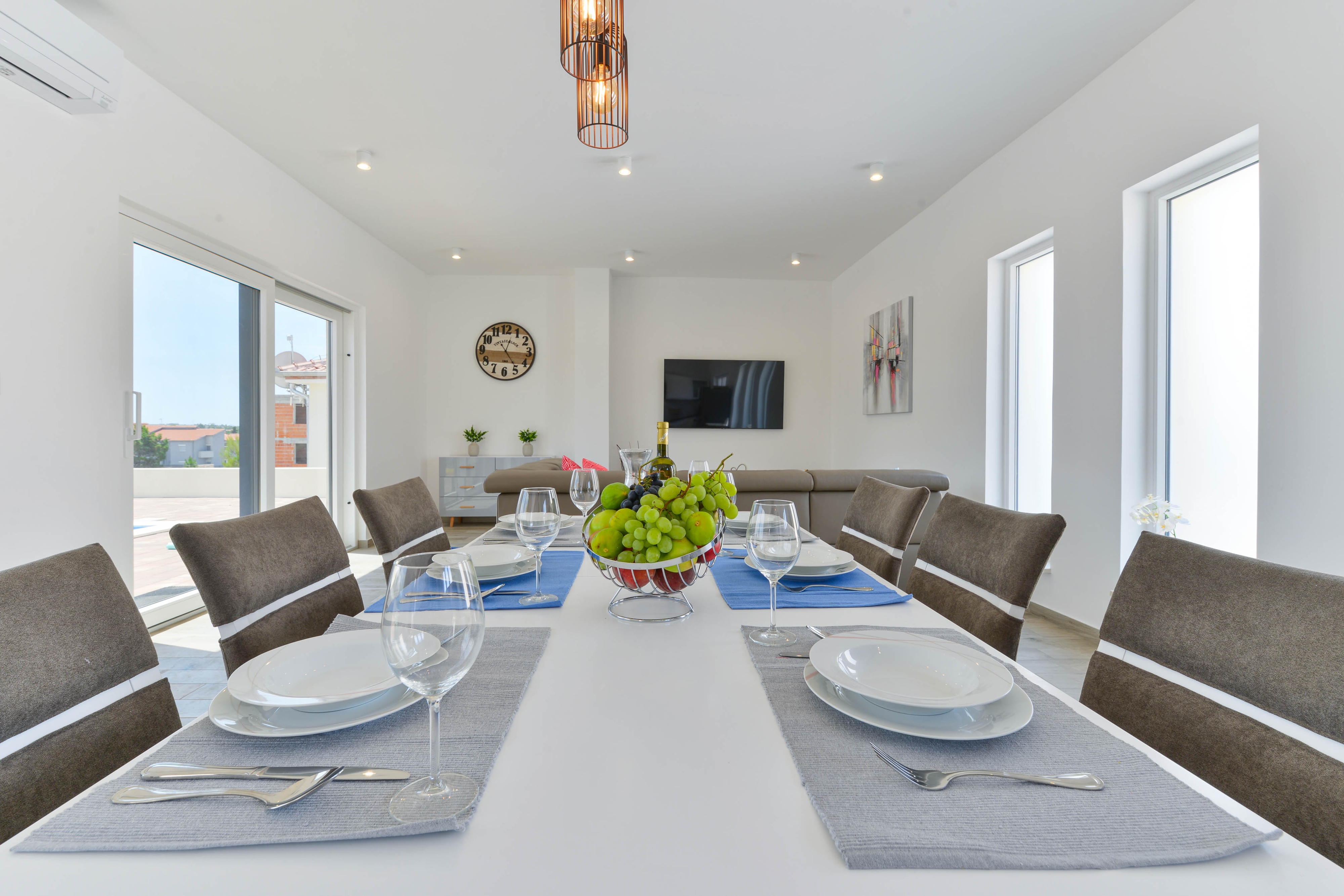House 19140 in the town of Vrsi - Mulo, Zadar - North Dalmatia is located 550 m from the sea. The nearest beach to this accommodation is a pebble beach. The house is categorized as "Luxury villas". You will be the houses only guests during your holiday, as there are no other rooms or apartments. The hosts will not be in the house for the duration of your holiday. The house owner is under no obligation to accept additional persons and pets that were not stated in the reservation request and it is necessary to report them in advance.AMENITIES Courtyard (200m2, Area suitable for children, Sitting area), Parking lot (Number of parking spaces: 4, Distance from the house: In the courtyard), Pool: shared, Dimensions: 7m x 3m x 1.5m, Type of water: Freshwater, Heating: Yes, WiFi Internet, Hairdryer, Iron, Ironing board, Baby cot LOCATION AND ACCESS Facility is situated near a local road Local road between the property and the beach Car access possible: Yes The facility is situated in relatively quiet surroundings DISTANCES Sea: 550 m Beach: 550 m Center: 25 km Shop: 500 m Urgent medical care: 7 km Pharmacy: 2.5 km Exchange office: 2.5 km ATMBank machine: 500 m Tourist info: 1.8 km Airport: 30 km Ferry port: 28 km Bus station: 26 km Gas station: 10 km Farmers market: 5.5 km