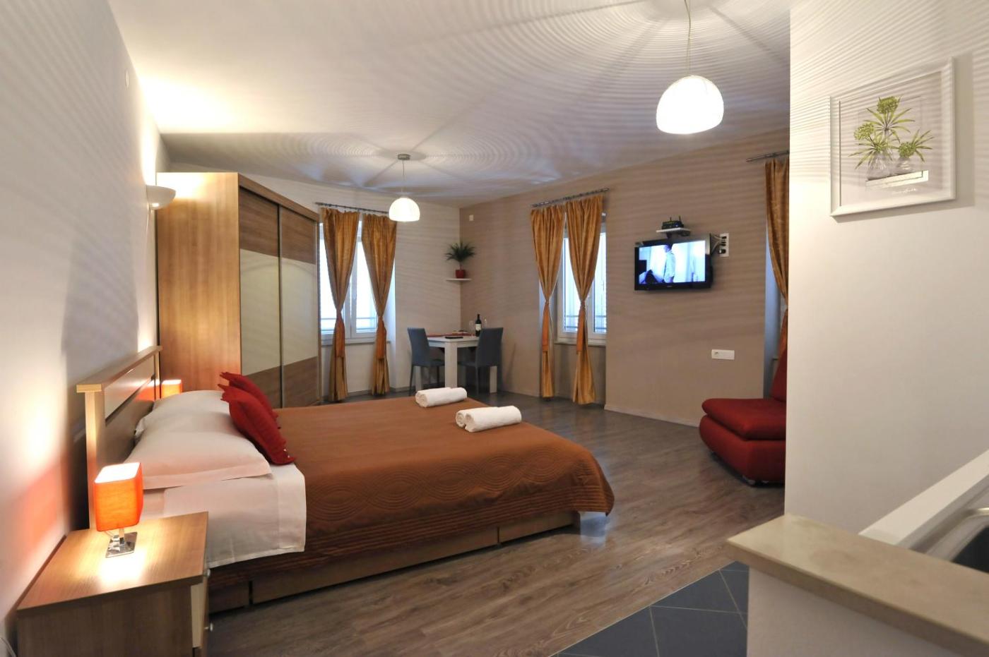 Studio Apartment. This air-conditioned and spacious studio features modern furnishings, an LCD satellite TV and a fully equipped kitchenette. ;