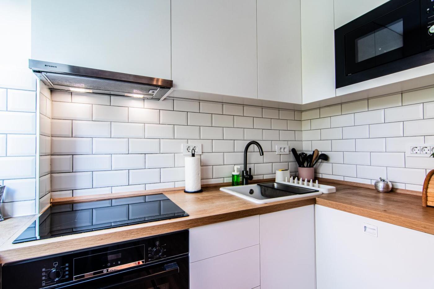 One-Bedroom Apartment. Featuring a private entrance, this air-conditioned apartment is comprised of 1 living room, 1 separate bedroom and 1 bathroom with a walk-in shower and a hairdryer. In the well-equipped kitchen, guests will find a stovetop, a refrigerator, a dishwasher and kitchenware. The apartment features parquet floors, a seating area with a flat-screen TV, a washing machine, soundproof walls as well as city views. The unit offers 2 beds.